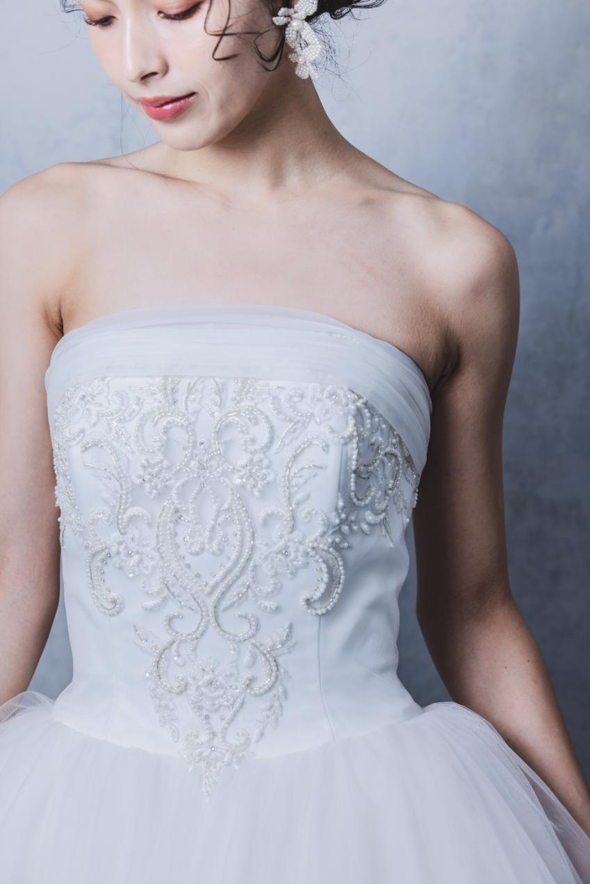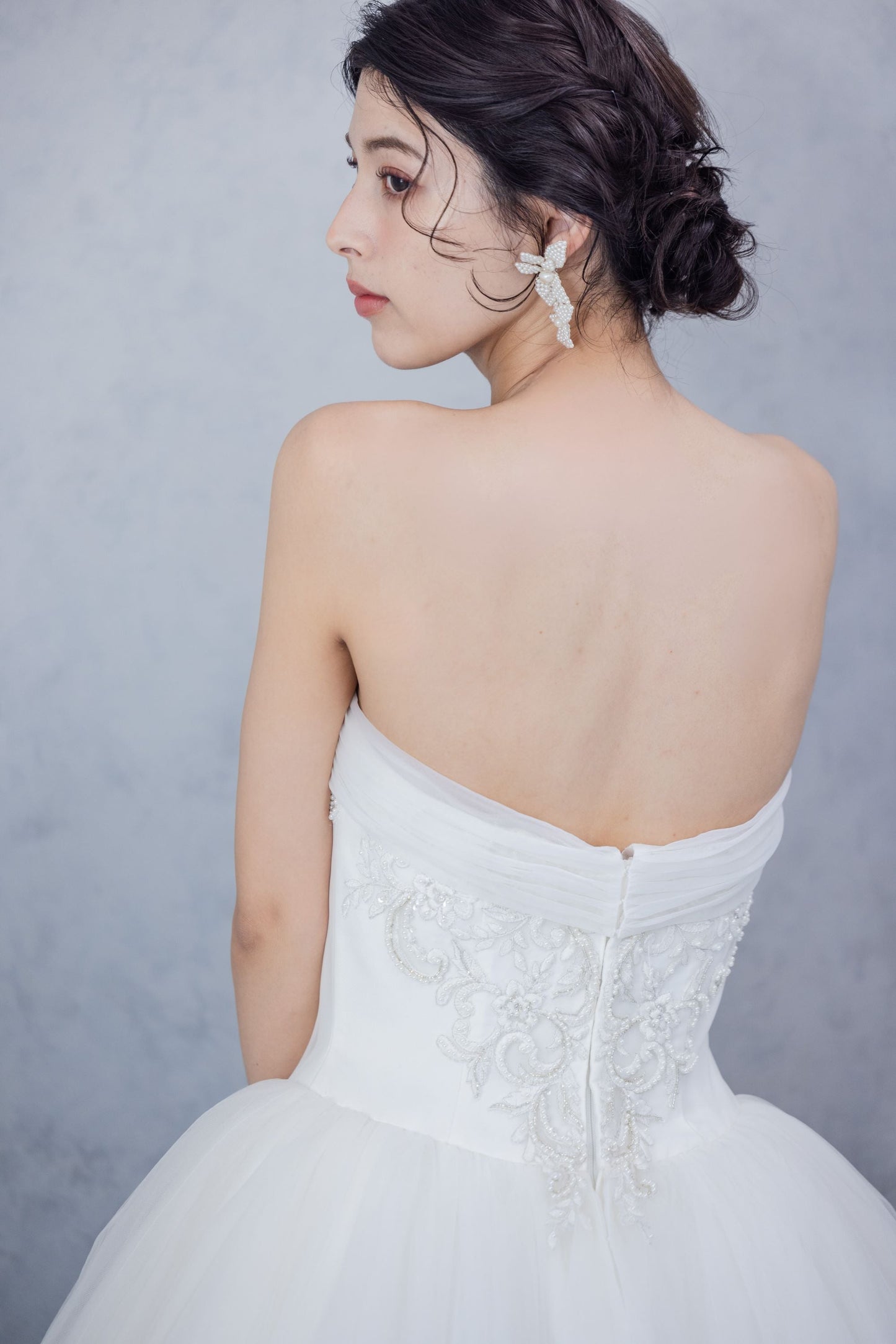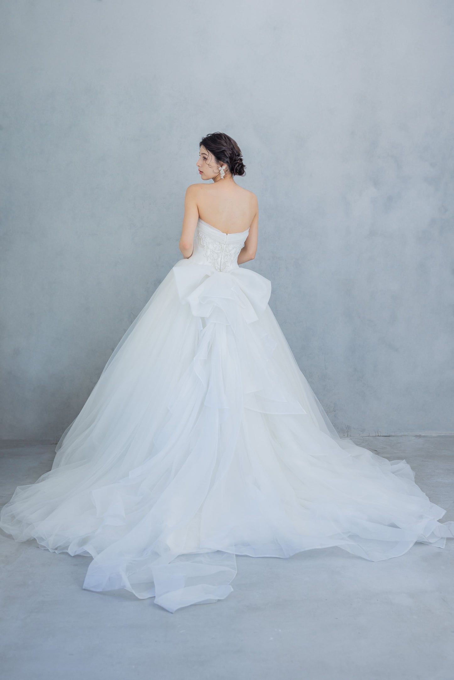 取り外しのできる大きなリボントレーンでバックスタイルも豪華に。