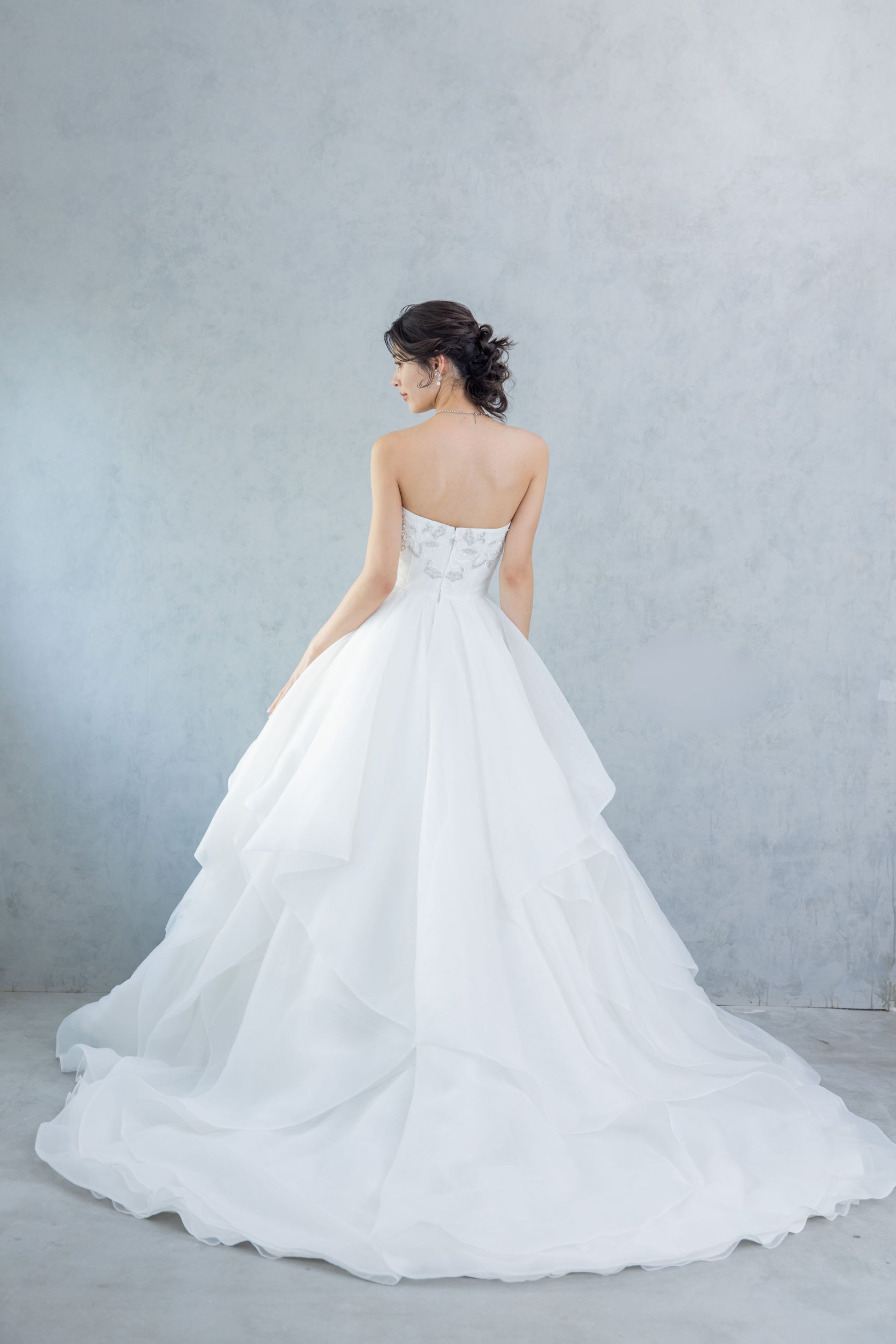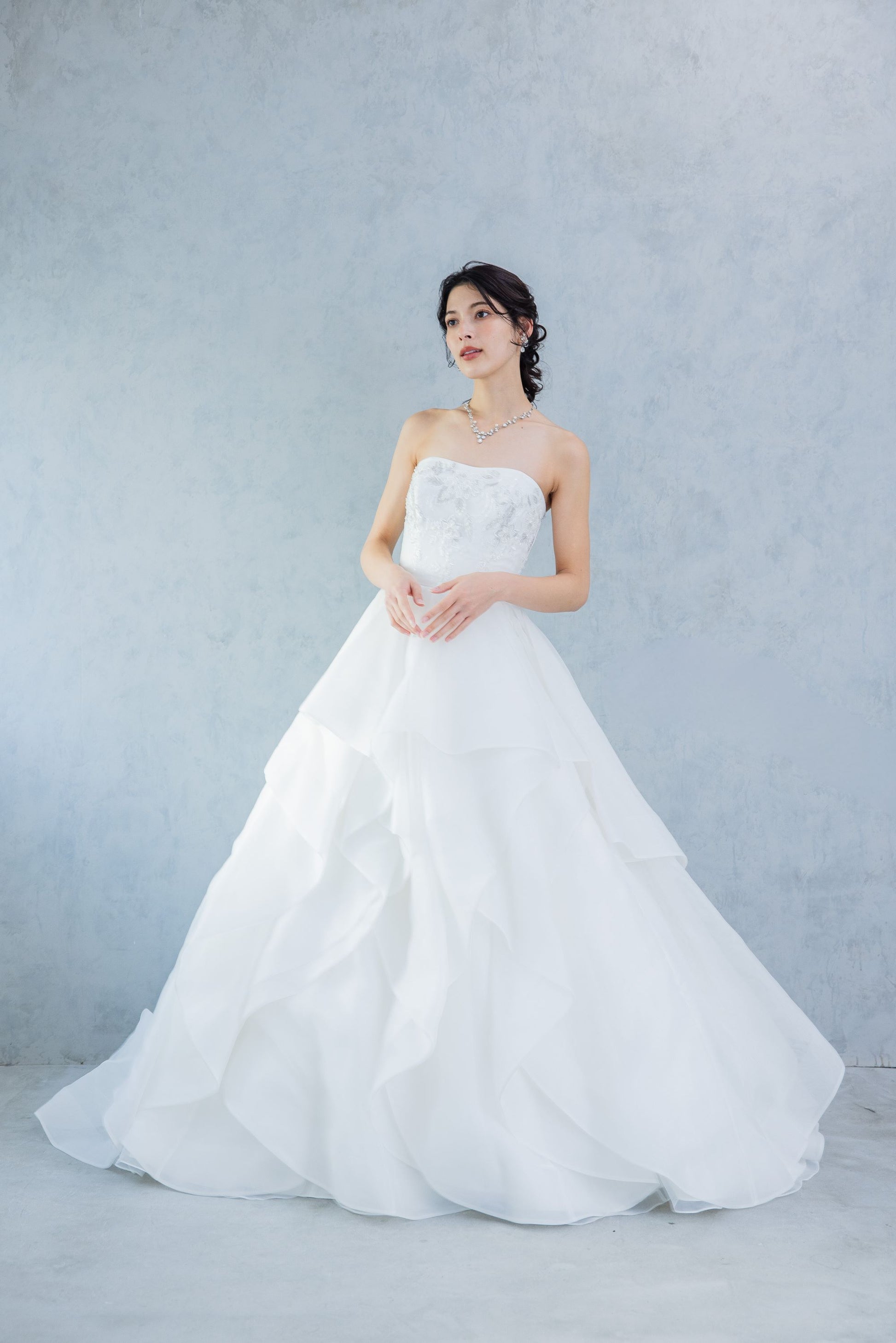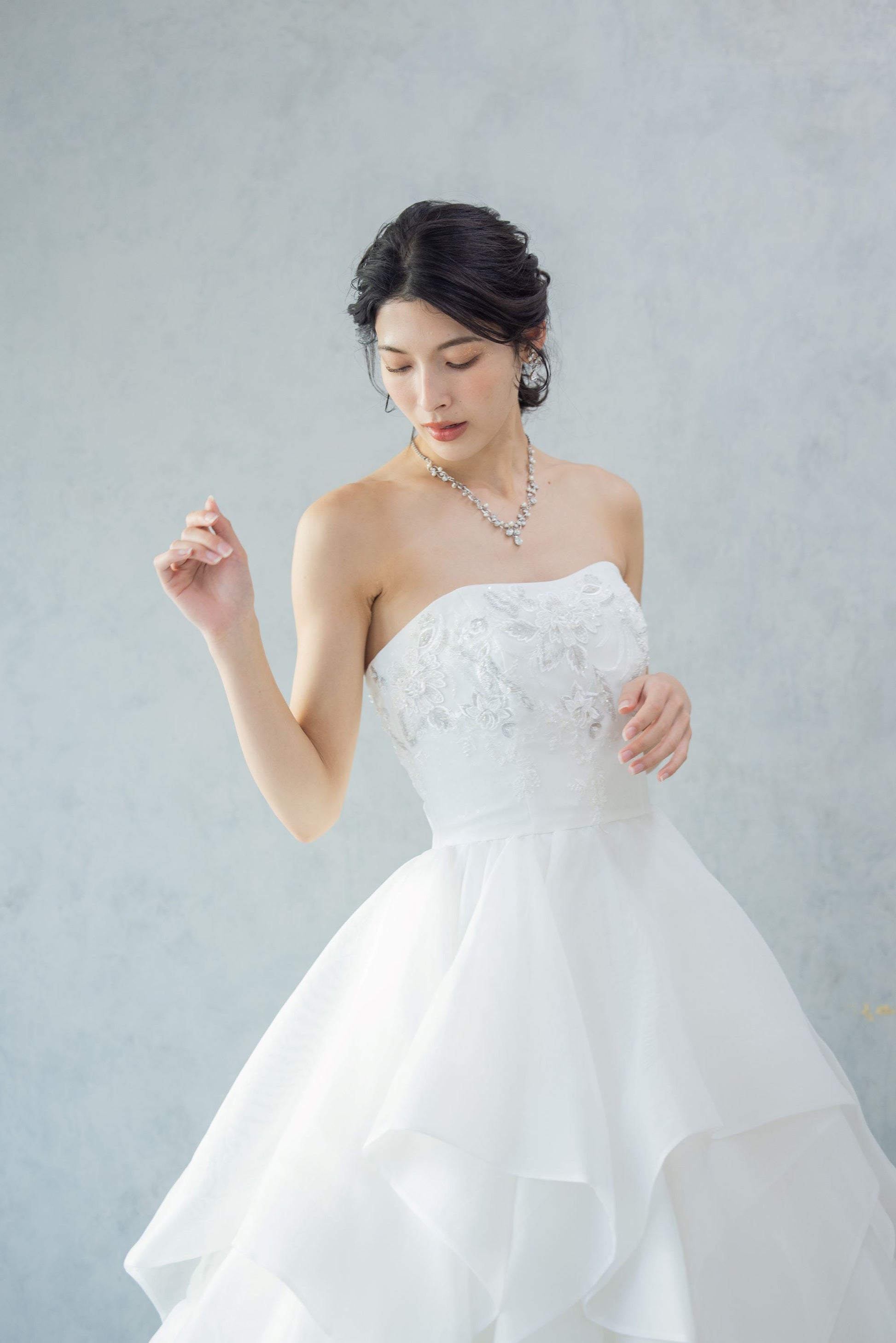 立体感のあるレースとフラワーモチーフを組み合わせた女性らしいプリンセスライン