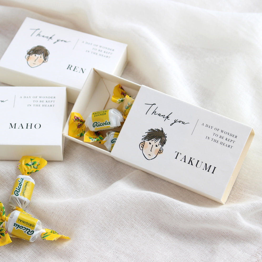 ゲストの似顔絵とお名前が印刷されたギフトBOX