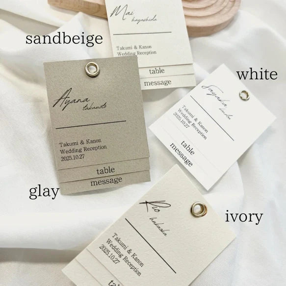 | 印刷備考 | ・データのご提出について ご購入後、当ショップよりデータ提出用の フォーマットをお送りいたします。 ご入力いただいたものをそのまま使用します。 お名前・敬称等の入力間違いにご注意ください。 ゲスト名簿はPDFや画像データでの提出はお受付できかねます。 入力したデータをお戻しください。 ※座席表はPDFや画像データでの提出可 ・仕上がりについて 一枚一枚丁寧に印刷・カット・ハトメ付けをしております。 多少のズレやインクの滲みがある場合がございます。 予めご了承ください。 |