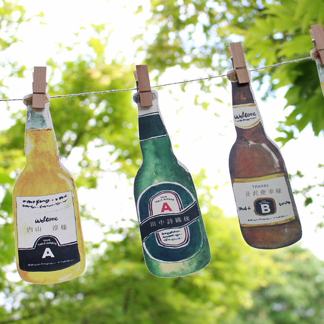 レトロな瓶ビールをモチーフにした席札・エスコートカード