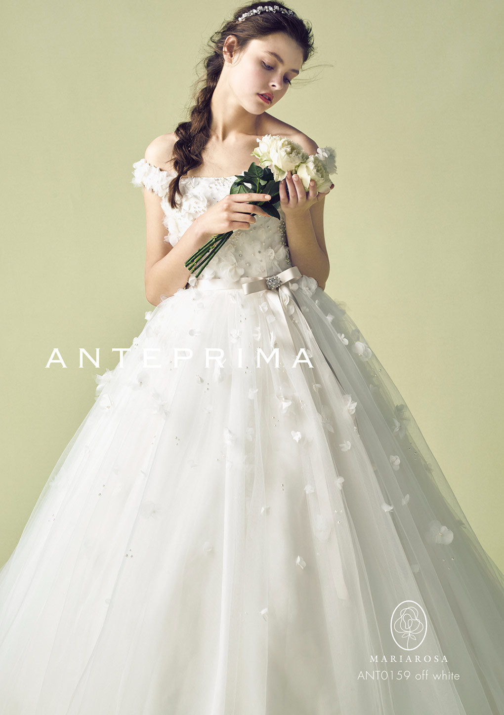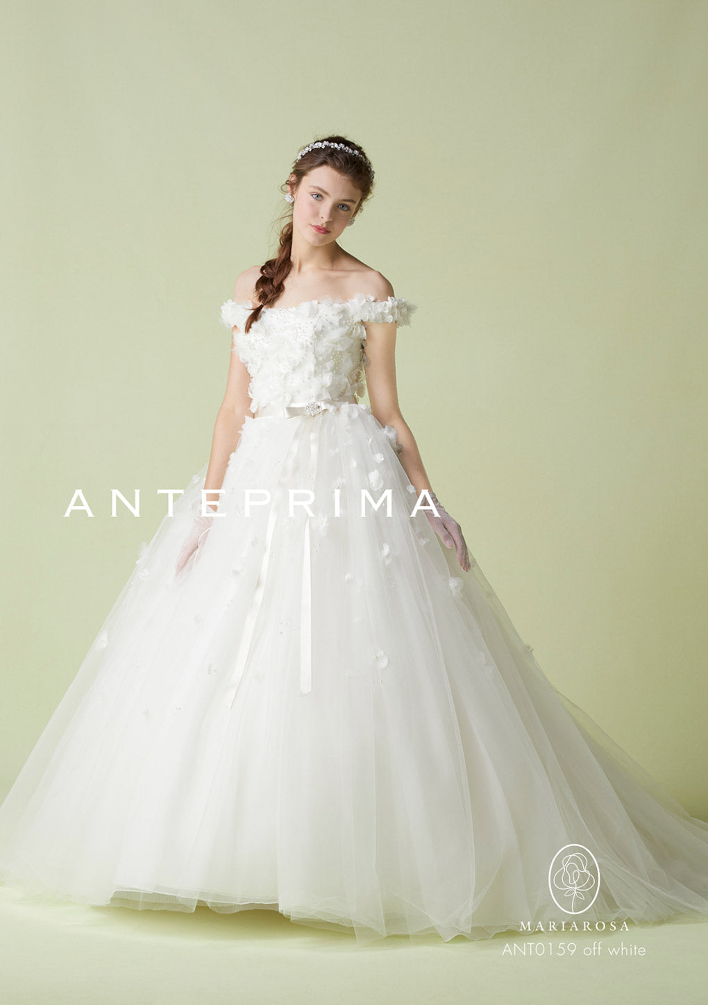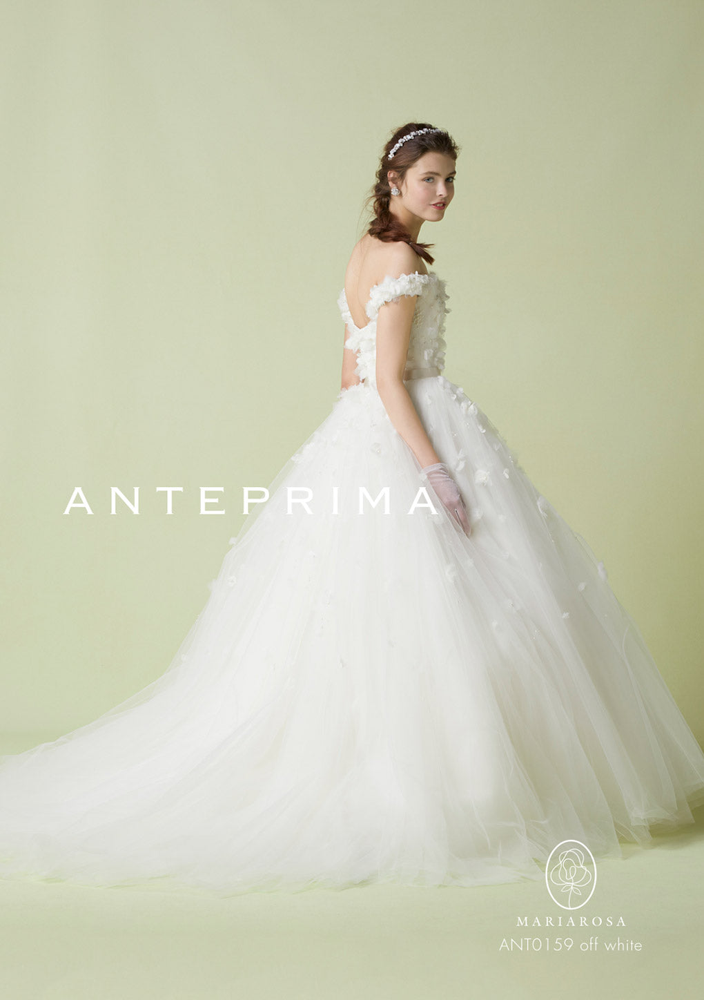 アンテプリマらしいソフトチュールにパールをMIXして散りばめた繊細なテクニックが光ります。