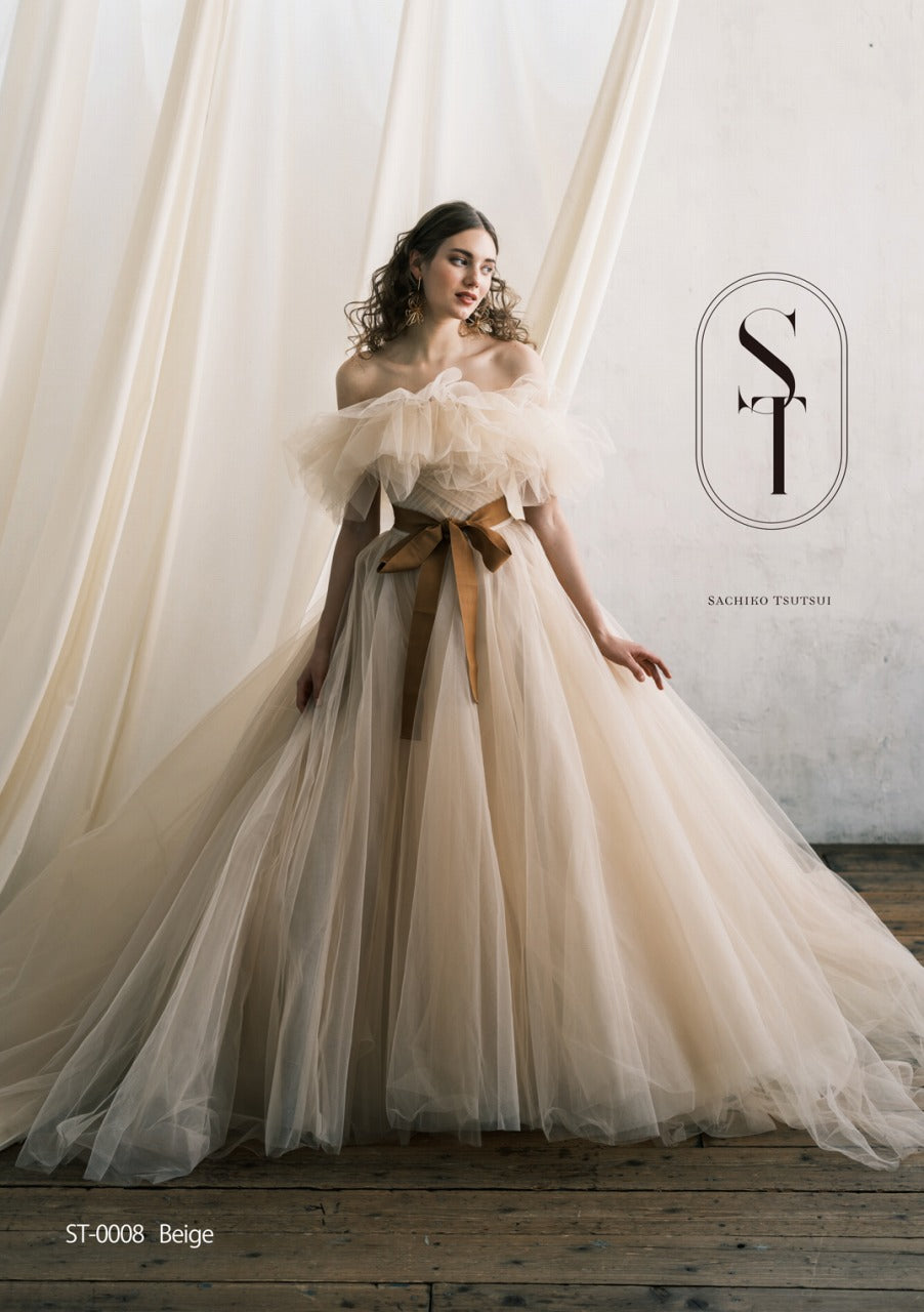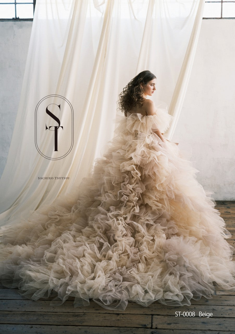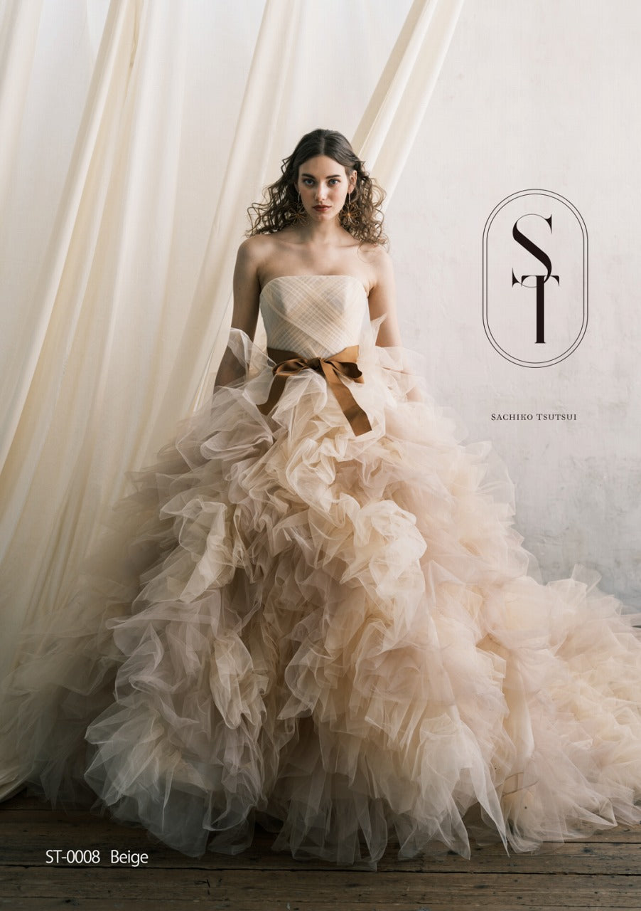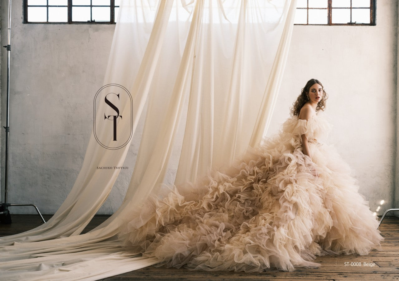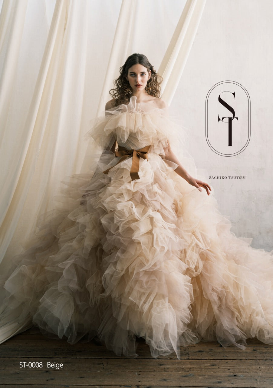 ふんだんに重ねられたチュールフリルのボリューム感がインパクト大のロマンティックドレス。