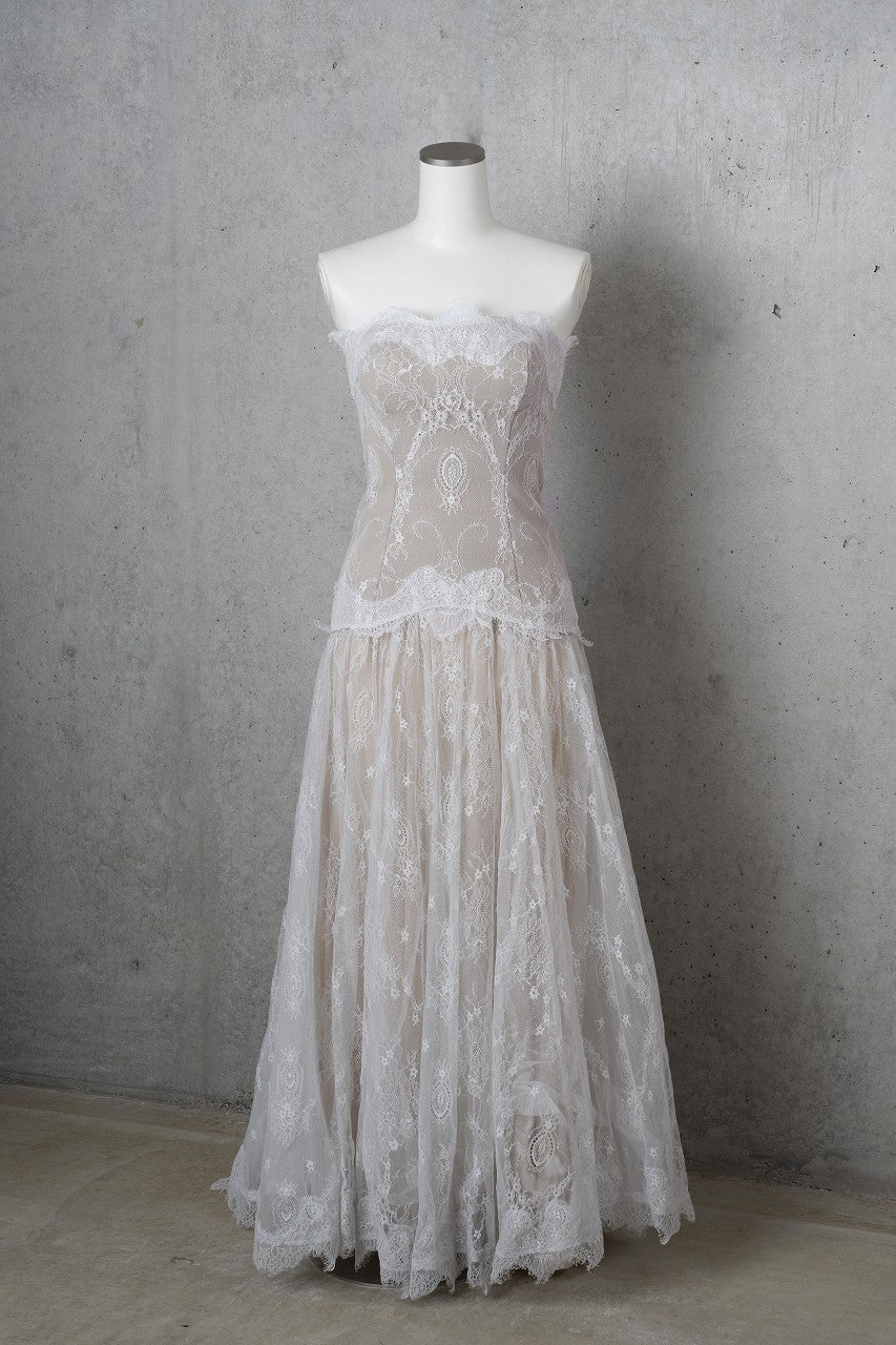 胸元と裾にはスカラップレースで華やかに。