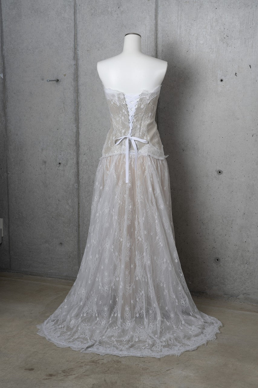 オリジナルのレースのプリントを施したウェット素材の上に、更にレースを重ねています。