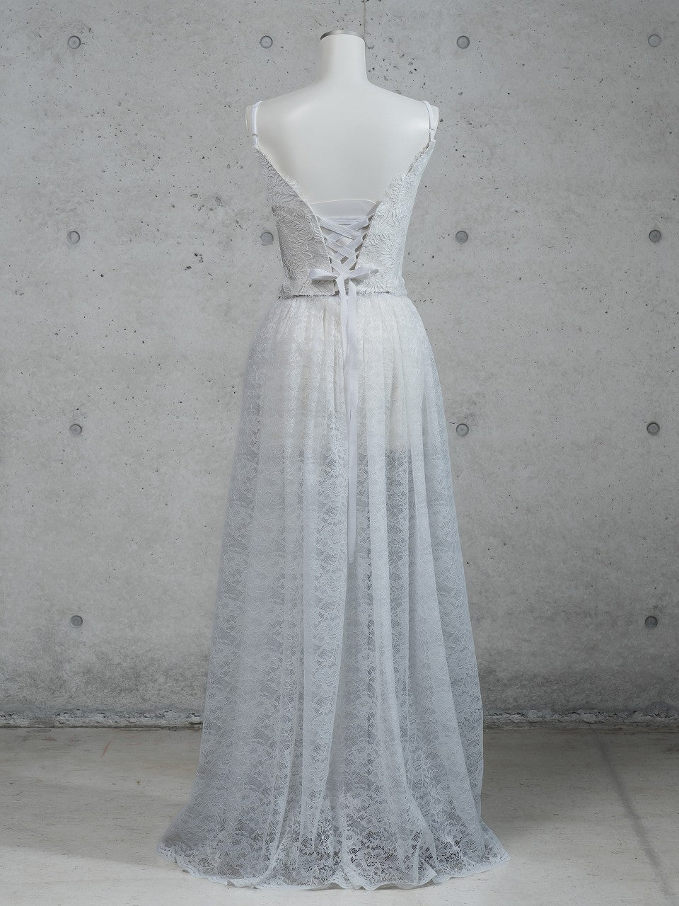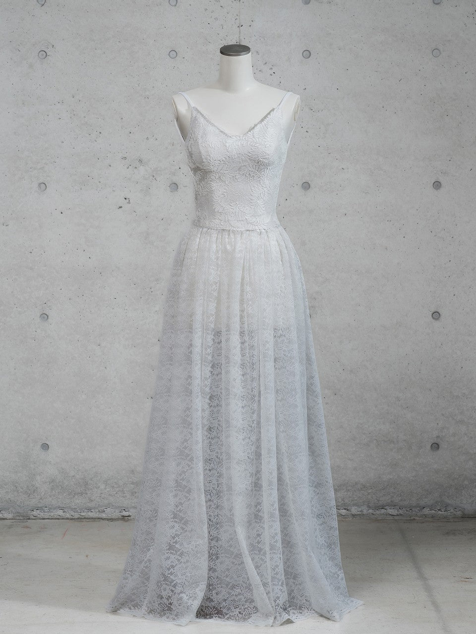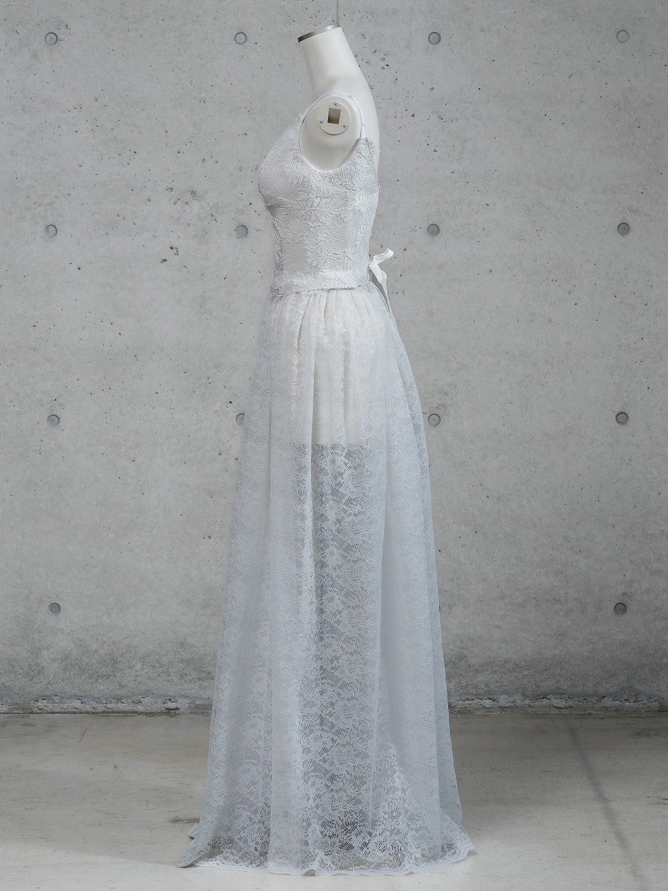 スカートは透け感のある総レースで上品で華やかな印象に。