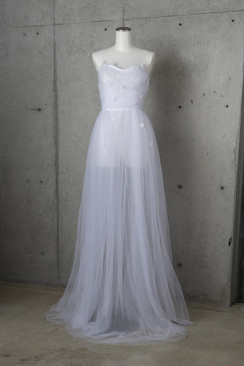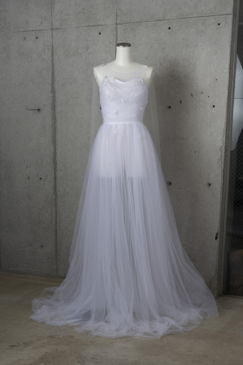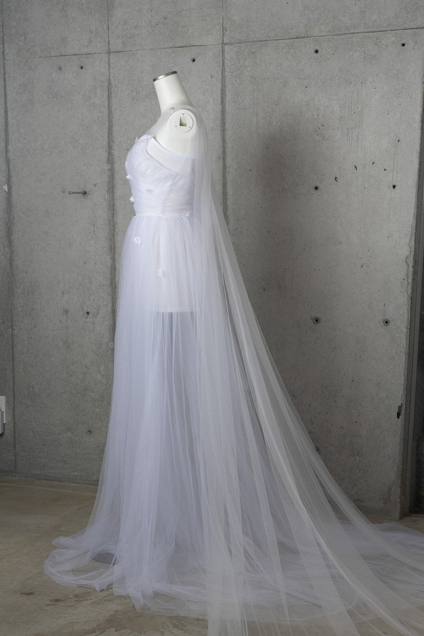 薄く軽やかな素材で、風に揺れるとドレスの印象が変わります。