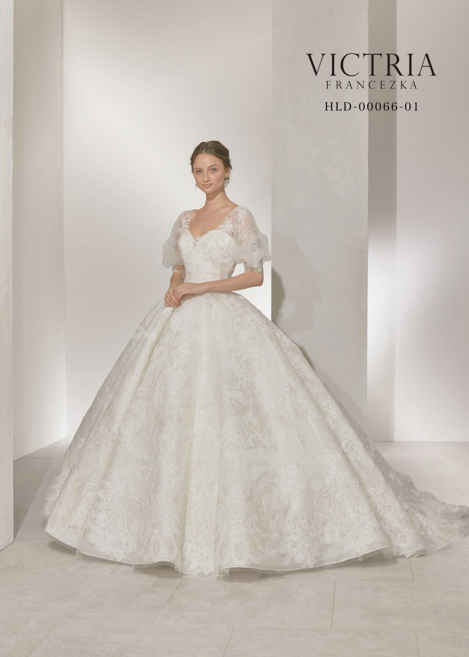 トレンドに大きなパフスリーブをつけて頂くと華やかなモード感溢れる印象にイメージを変えれます。