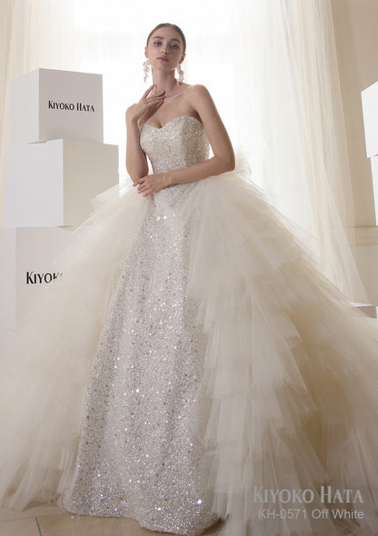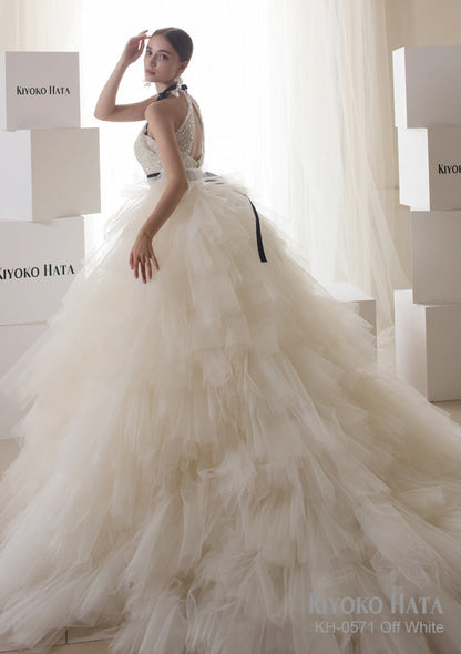 まるでスワンが羽ばたく様にドリーミーな主役級ドレス。
