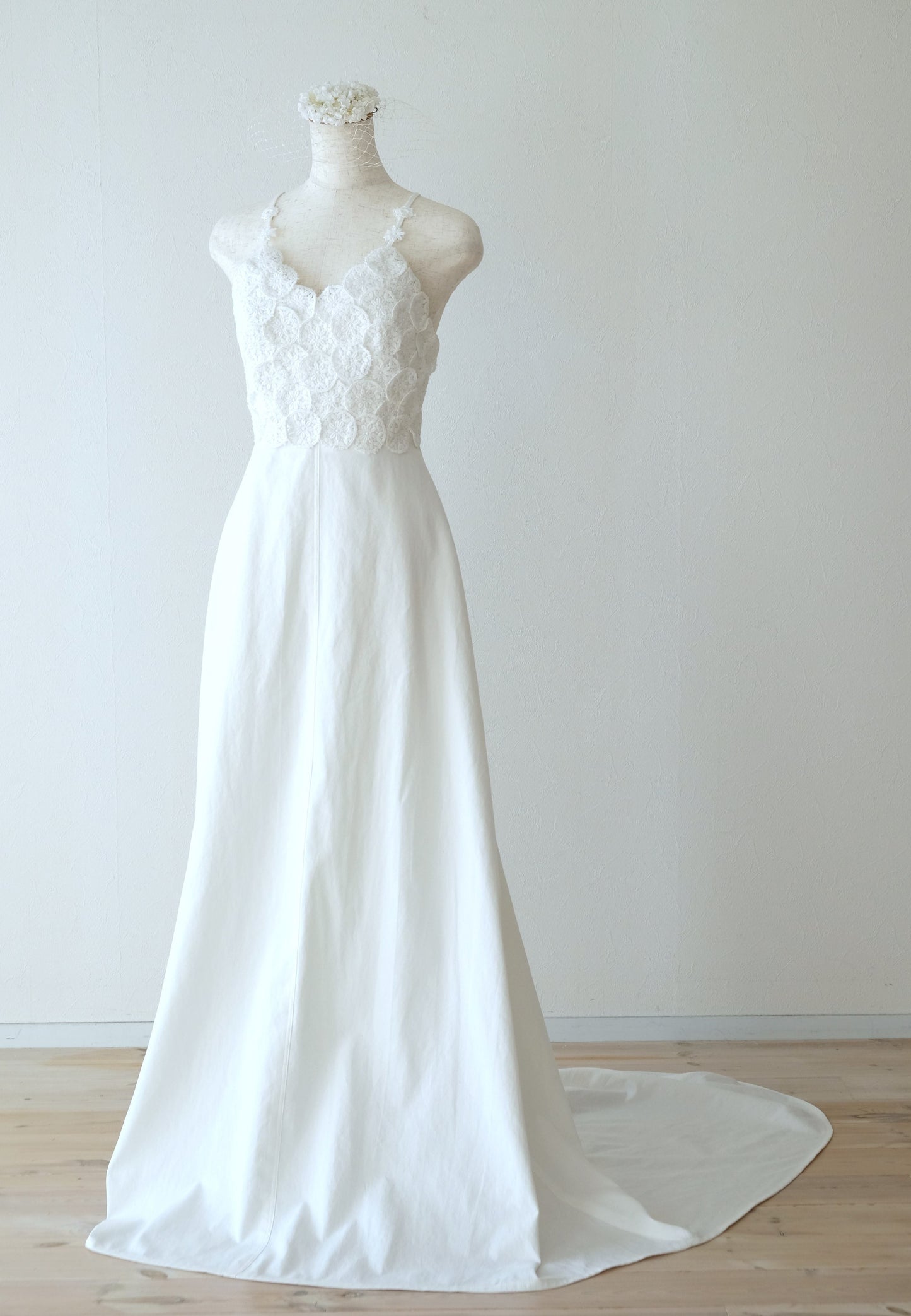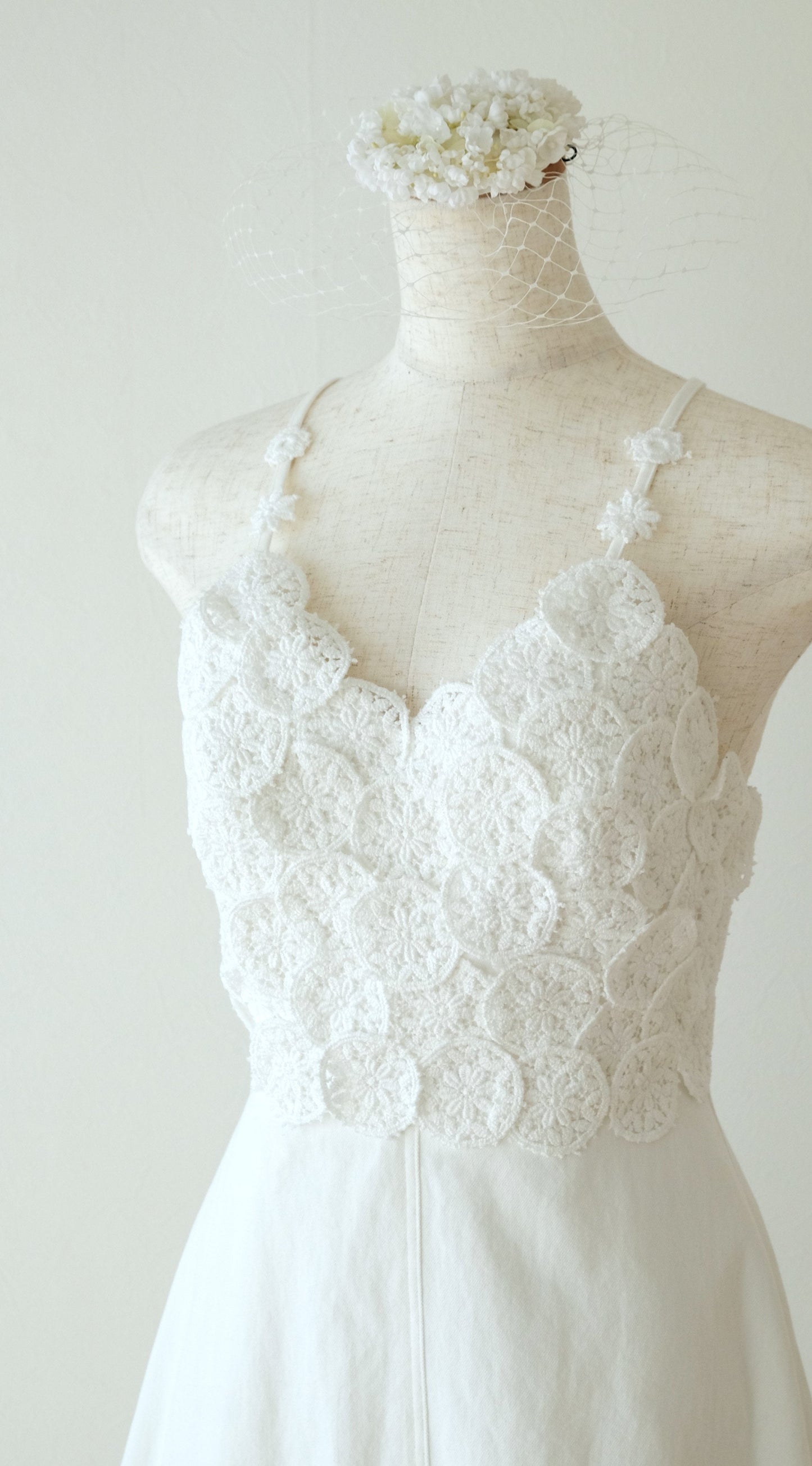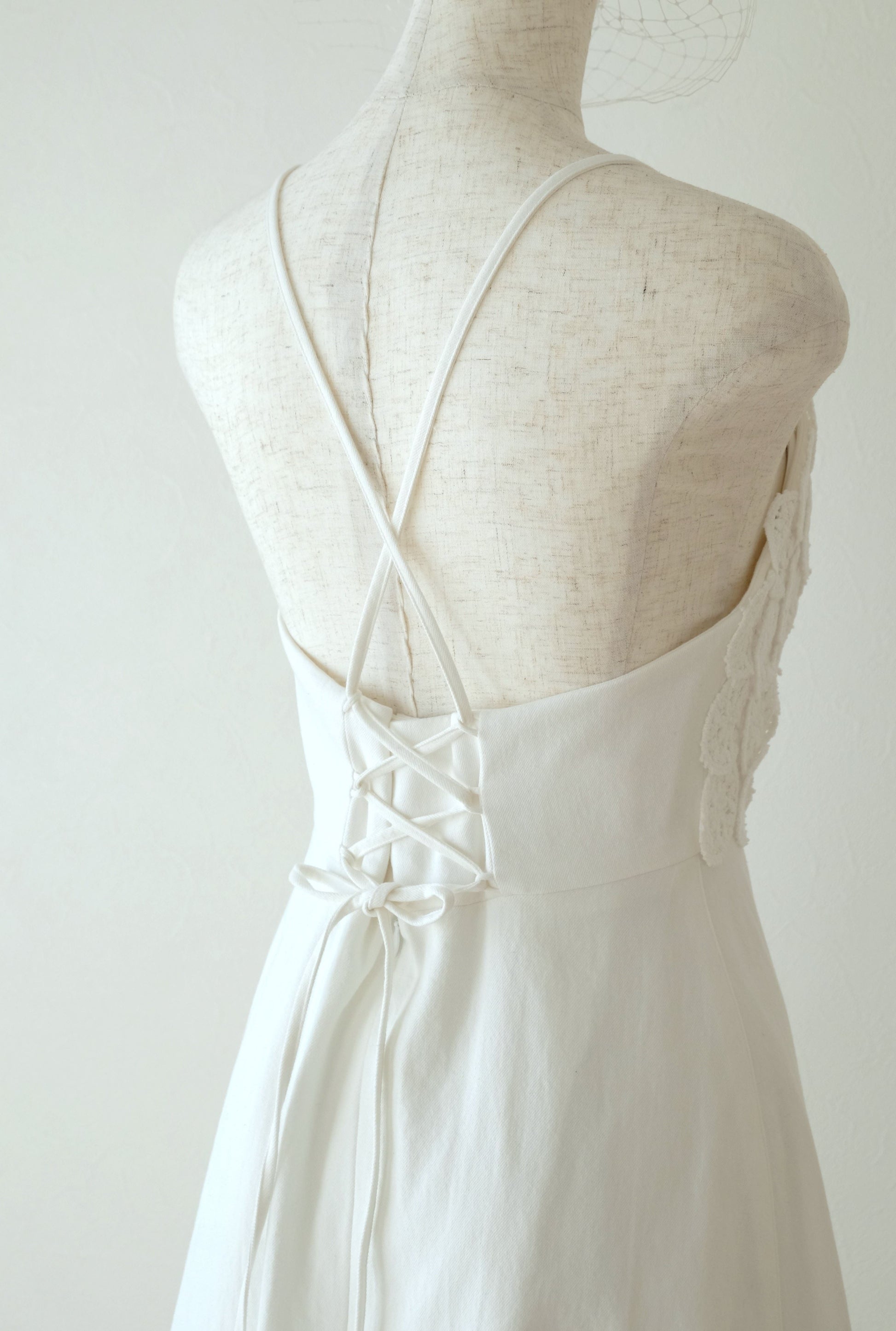 ホワイトデニムに、素朴で温かみのあるコットンレースを組み合わせています。