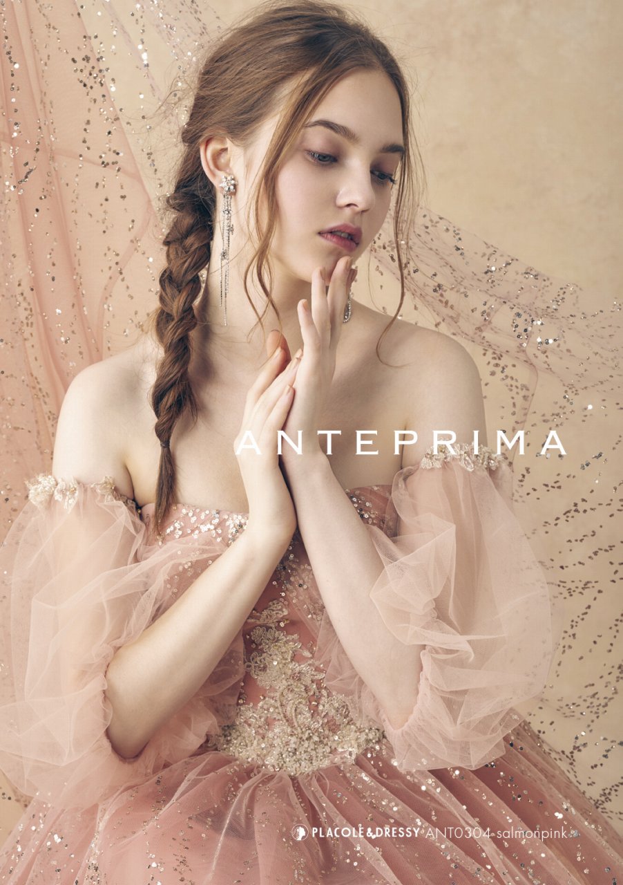 真のラグジュアリーウェディングをアンテプリマらしいカラーで プラコレっぽく若々しいシルエットで表現した 最旬トレンドドレス。