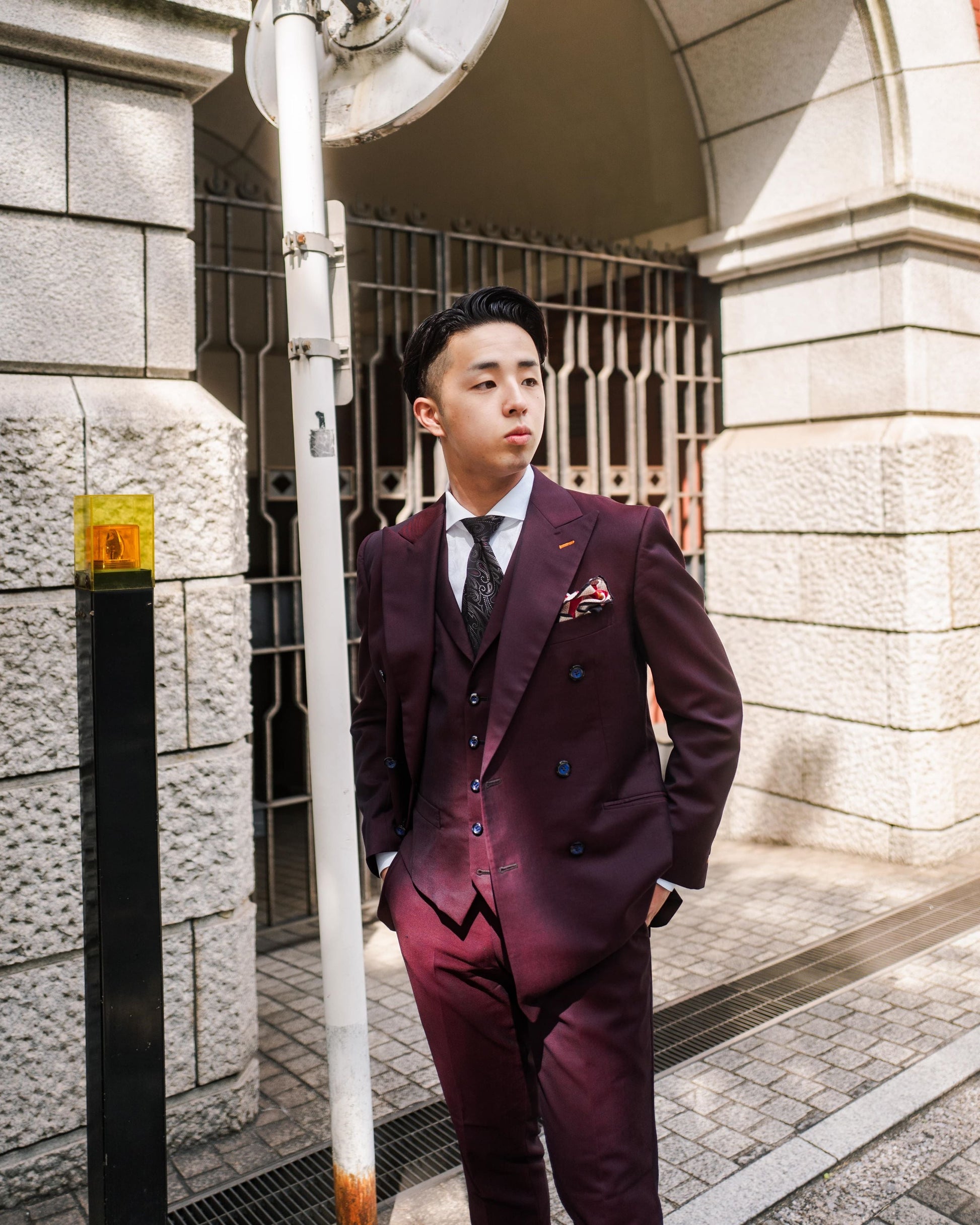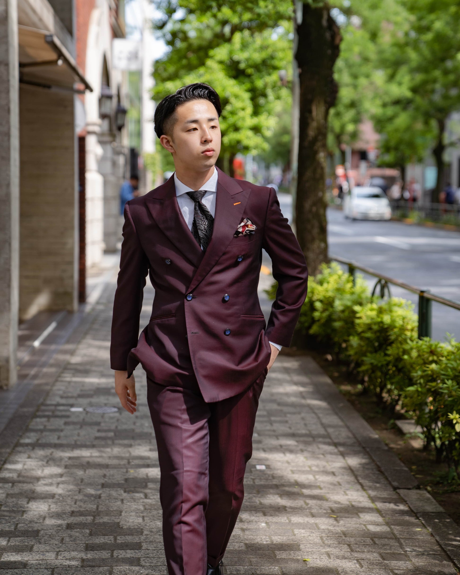 【CORDY特典あり】ワインレッドダブルスーツ/ベスト付き【結婚式 タキシード オーダーメイド】