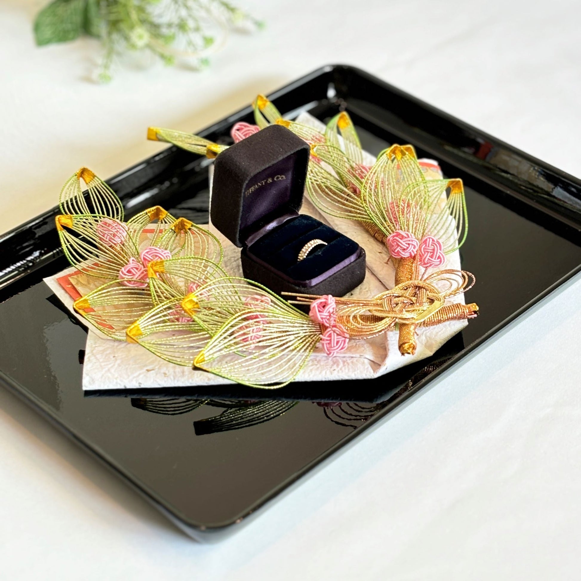 しあわせ指輪飾り 黒塗り盆付【結婚式 リングピロー 両家顔合わせ 結納】