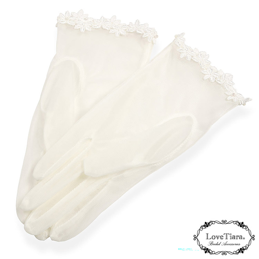 裾を小花のレースで囲ったオーガンジーグローブです。