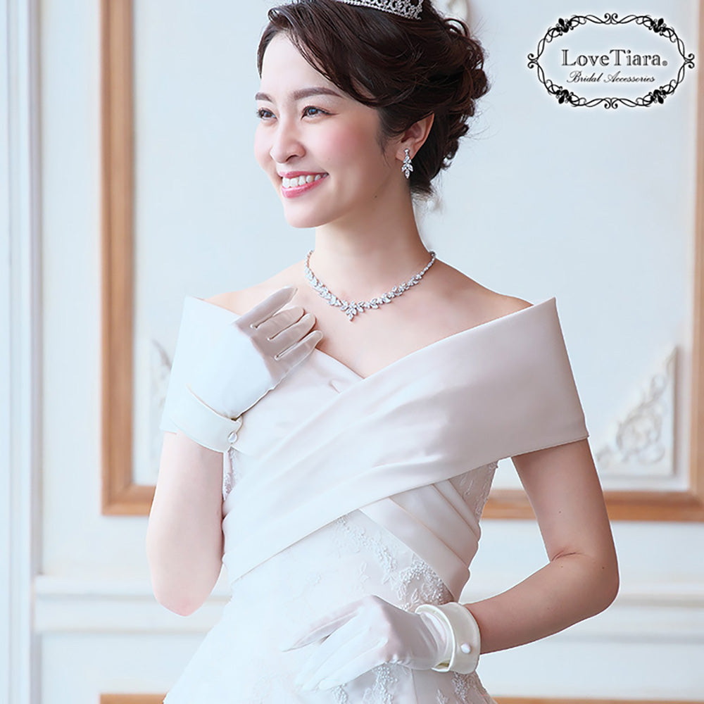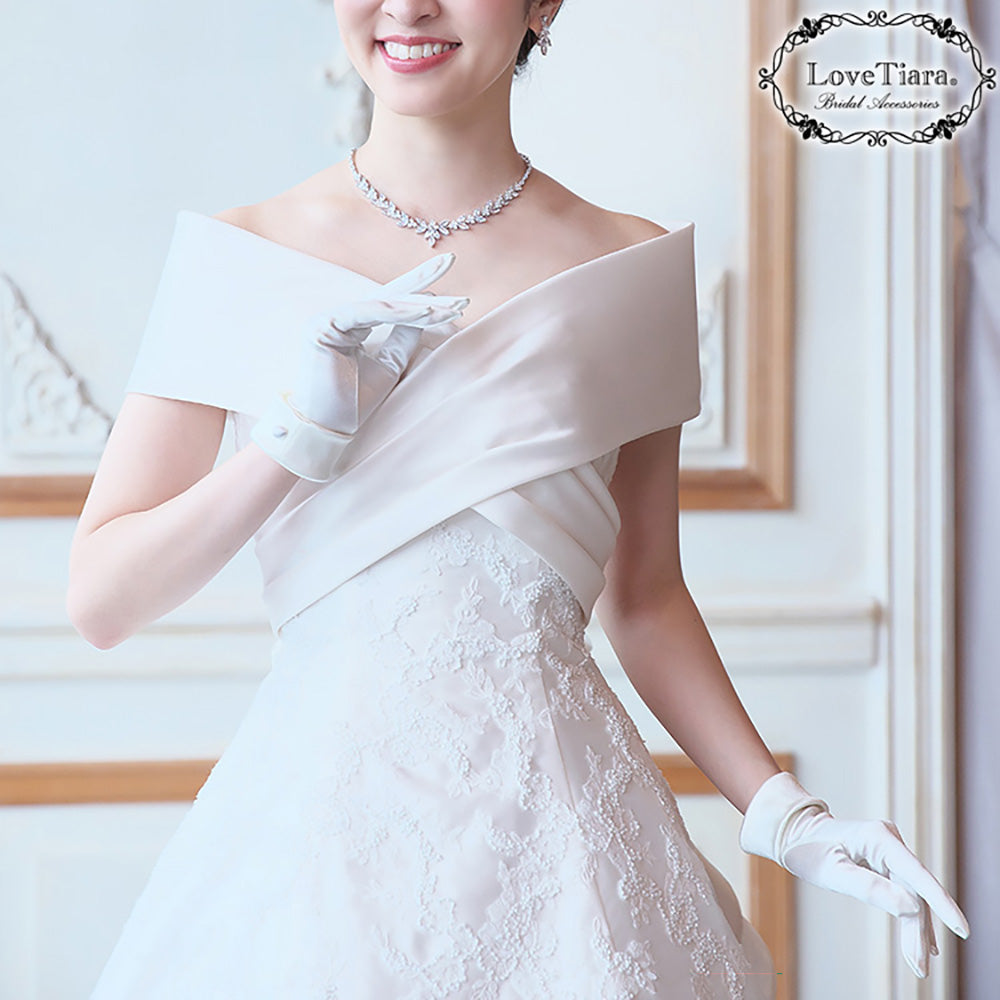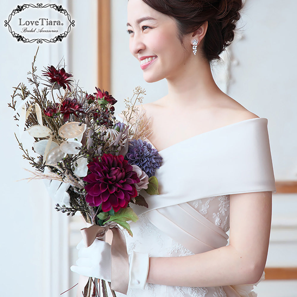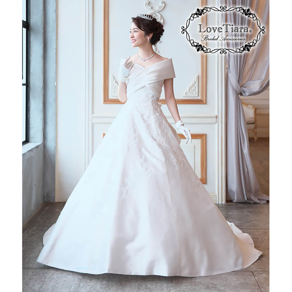 サテンのウェディングドレス姿を更に気品高いスタイルにします。