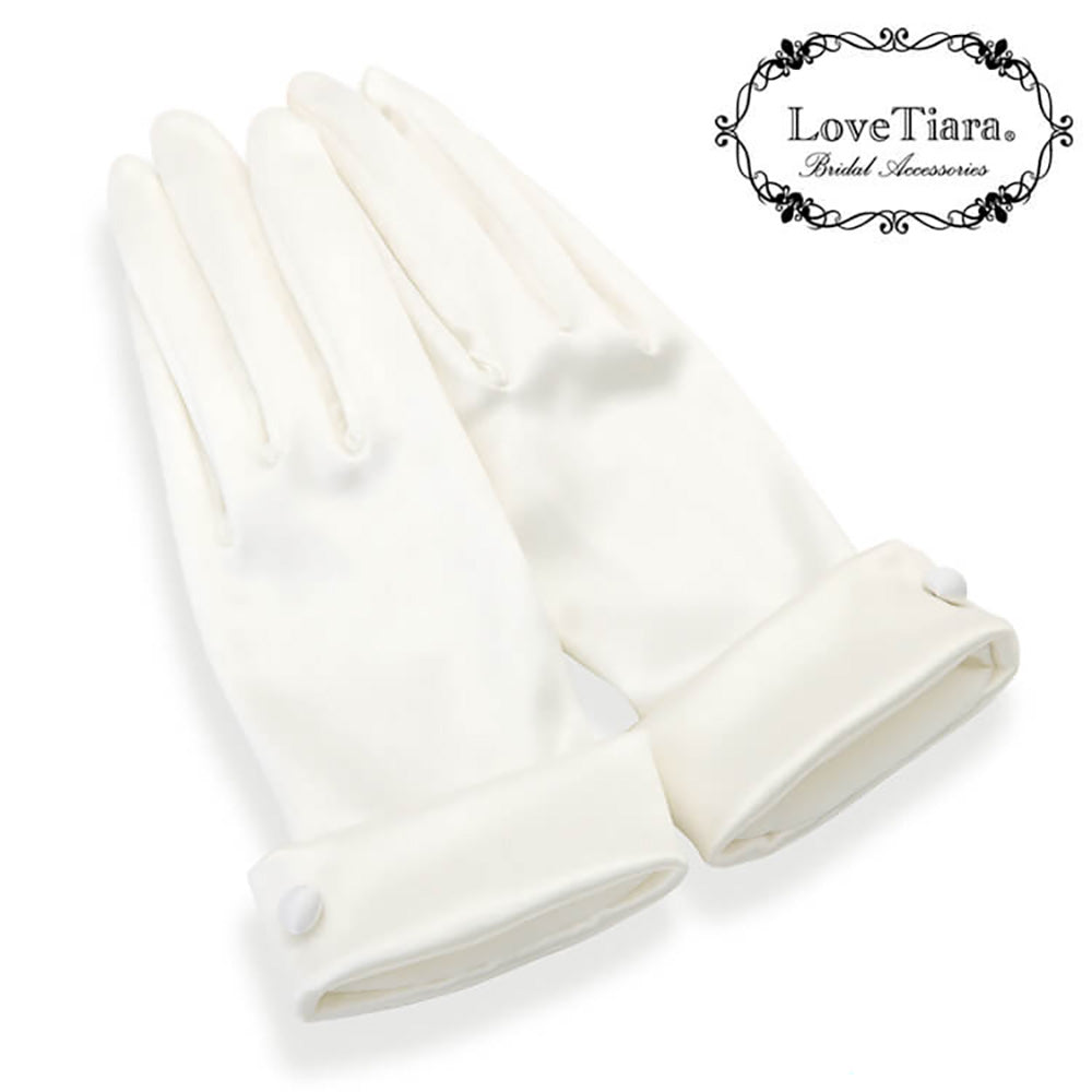 サテン地を折り返し、くるみボタンを配したショートのサテングローブ。