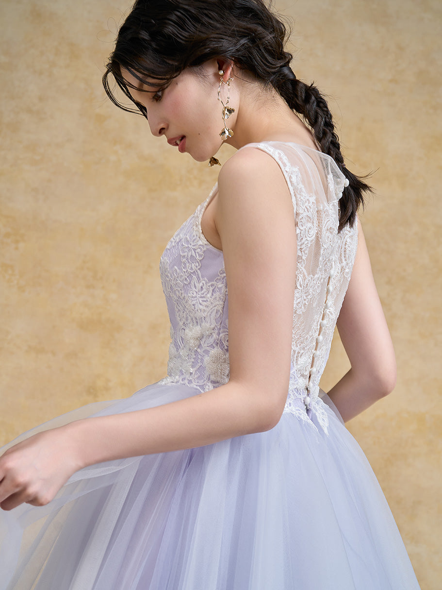 柔らかなチュールを重ねてできるエアリーなラベンダーカラーに