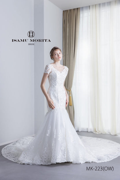 オリジナルカットレースをドレス全体を包み込むようにデザインした、haute coutureマーメードドレス。