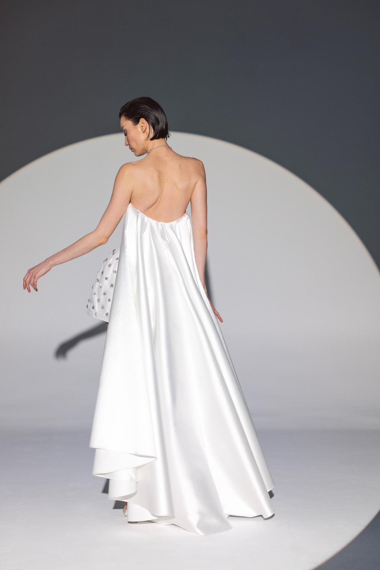 丸みを帯びたスカートラインと三角のテールマントが洗練された遊び心も演出します。
