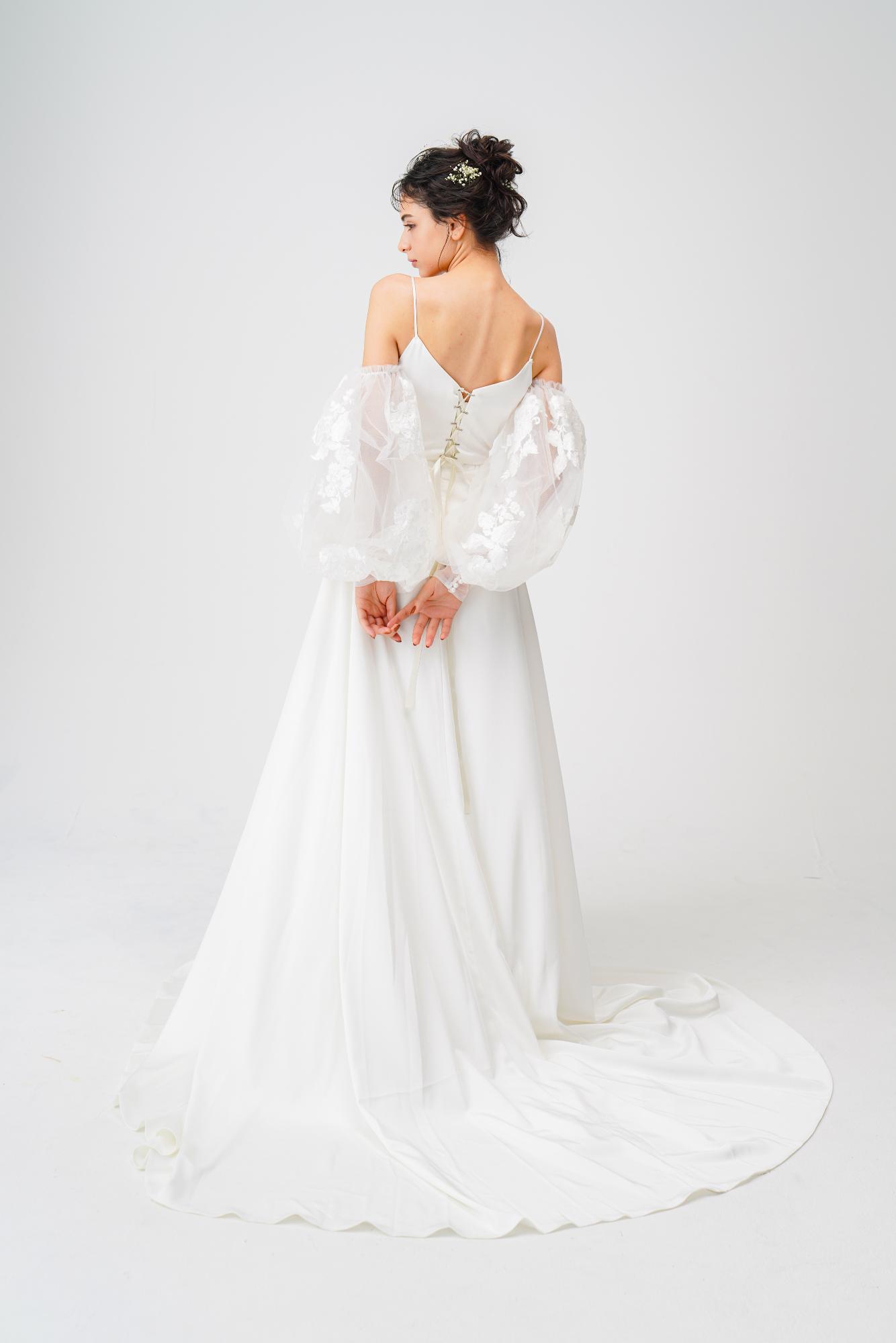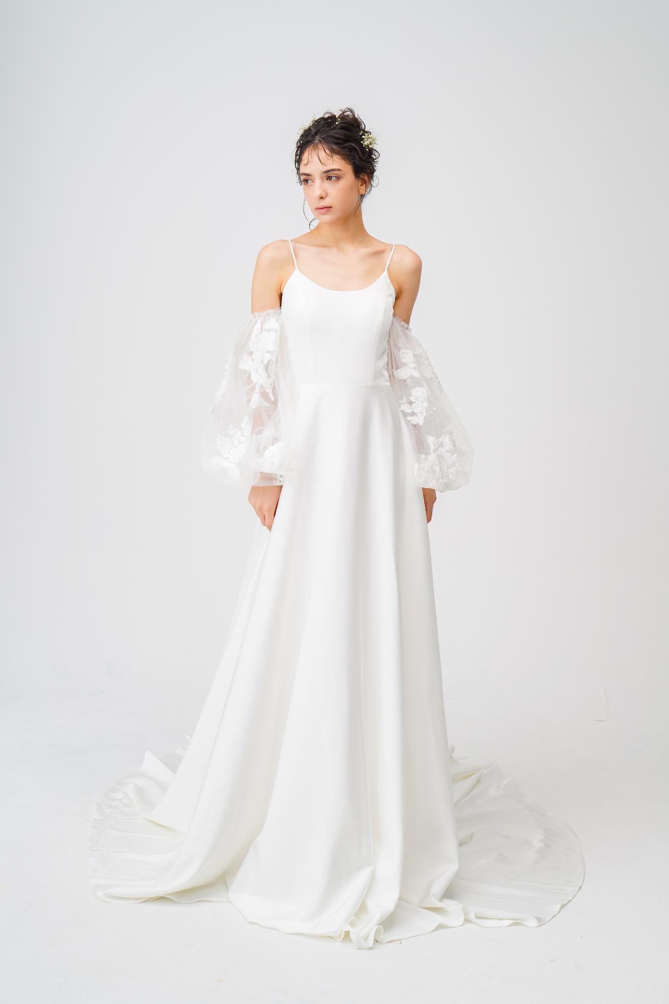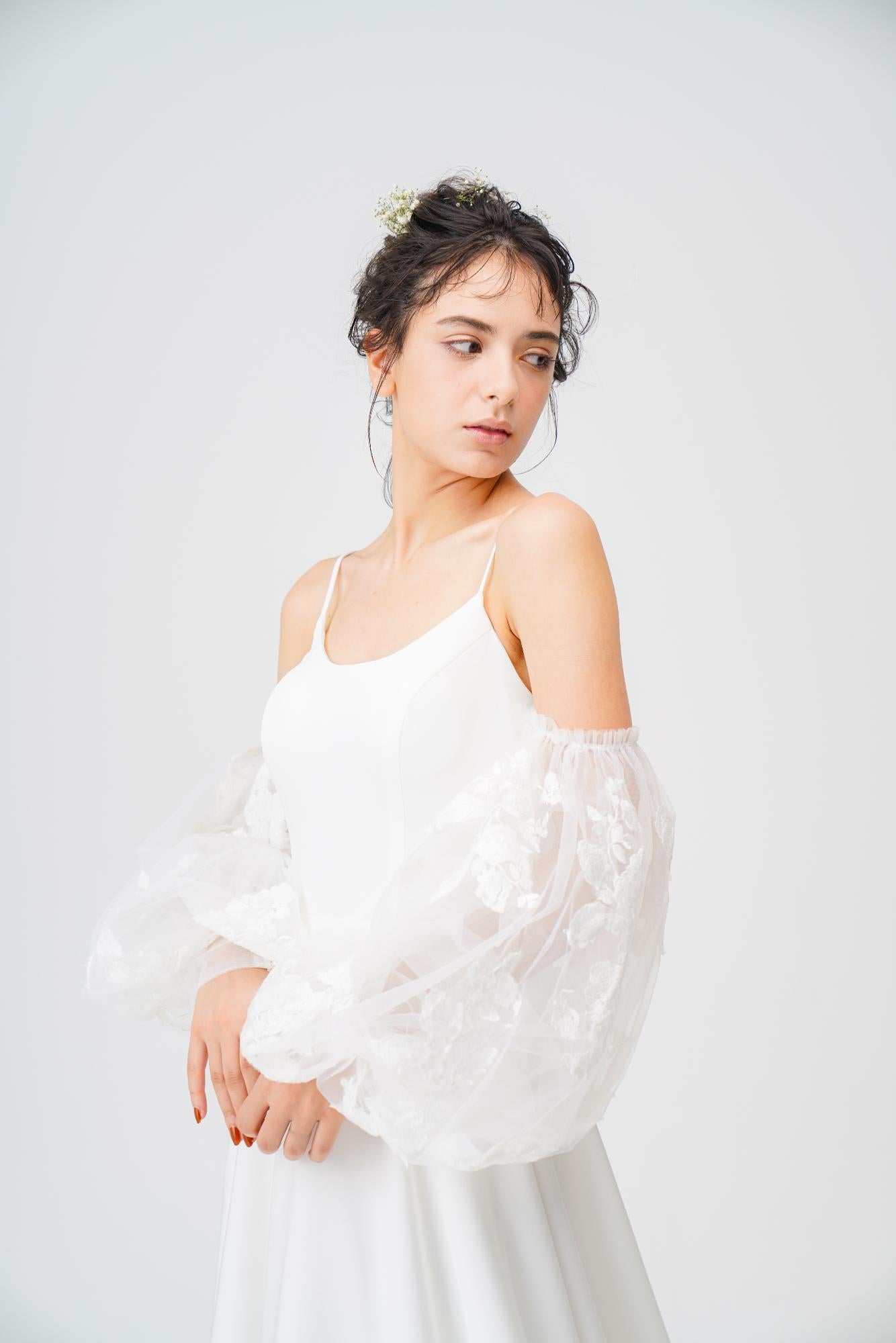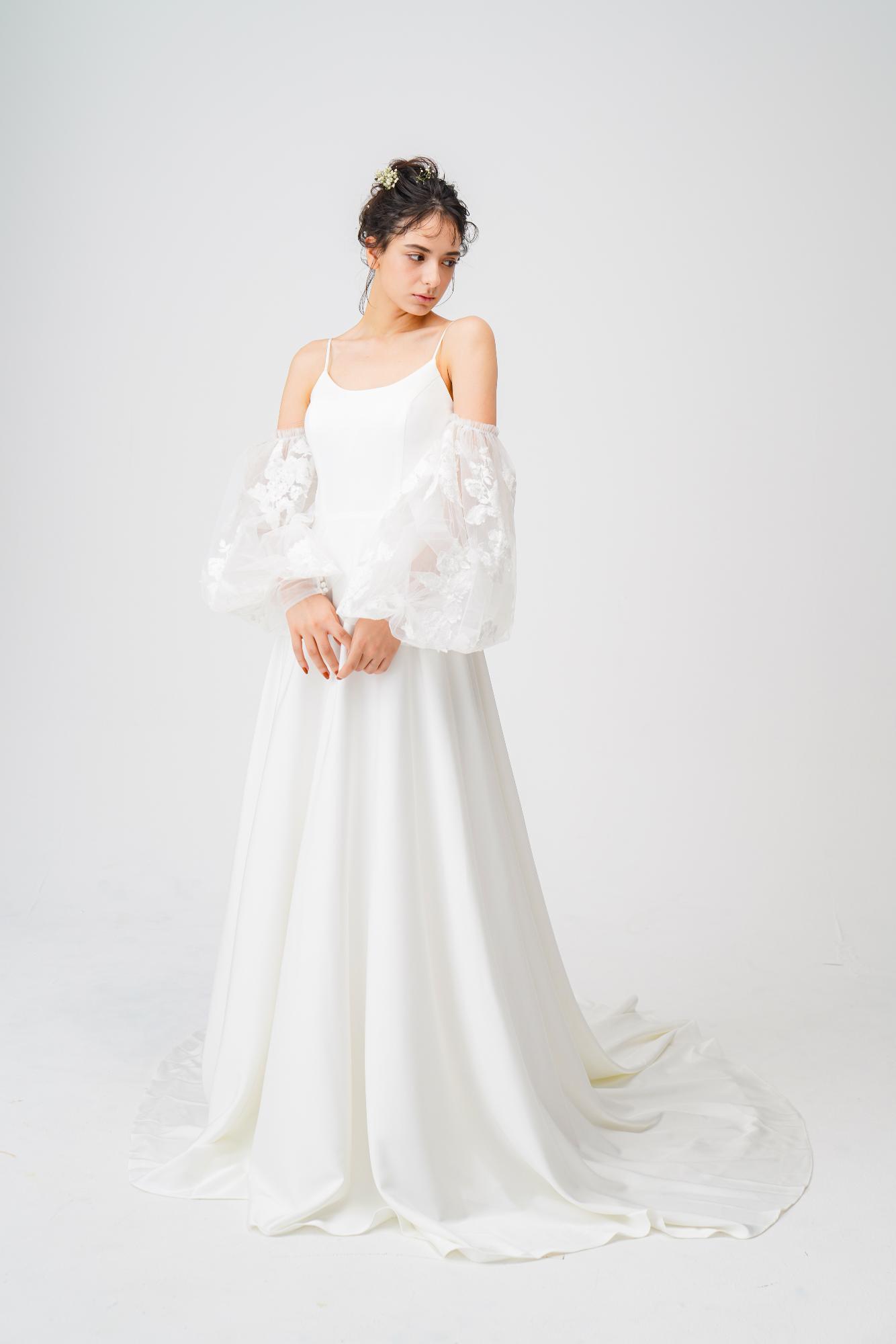 取り外し可能なパフスリーブが柔らかく洗練された印象に。
