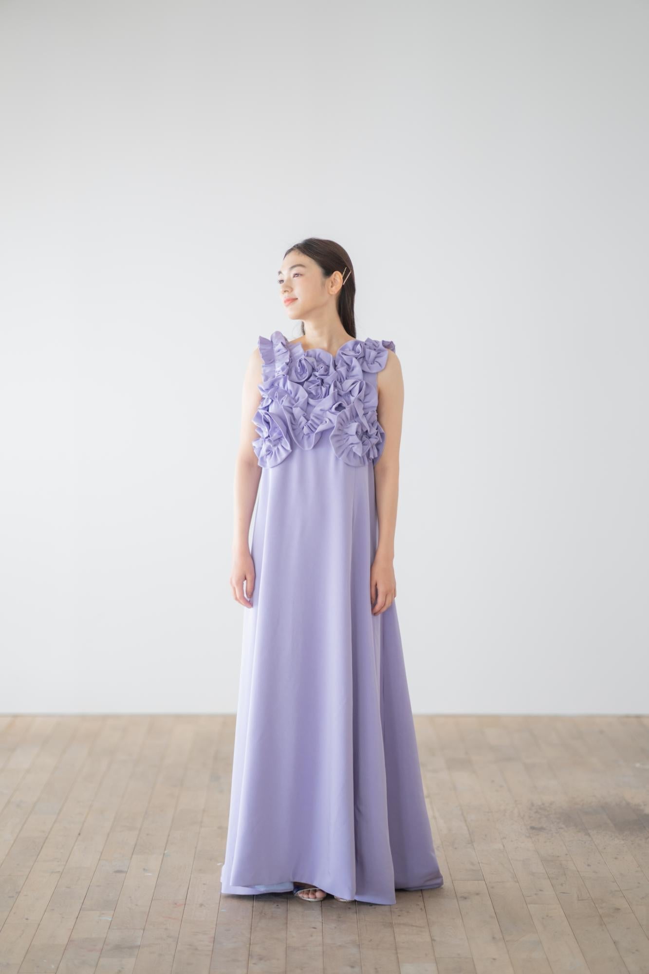 パステル調のパープルカラーが、女性らしいやわらかさを演出する一着です。