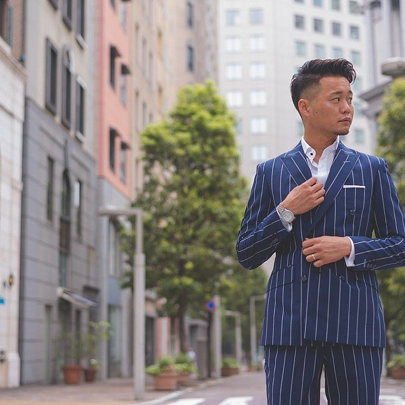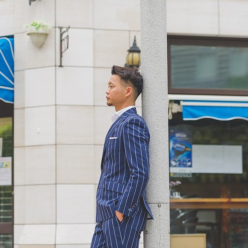 【CORDY特典あり】ストライプダブルスーツ/ネイビー【結婚式 タキシード オーダーメイド】