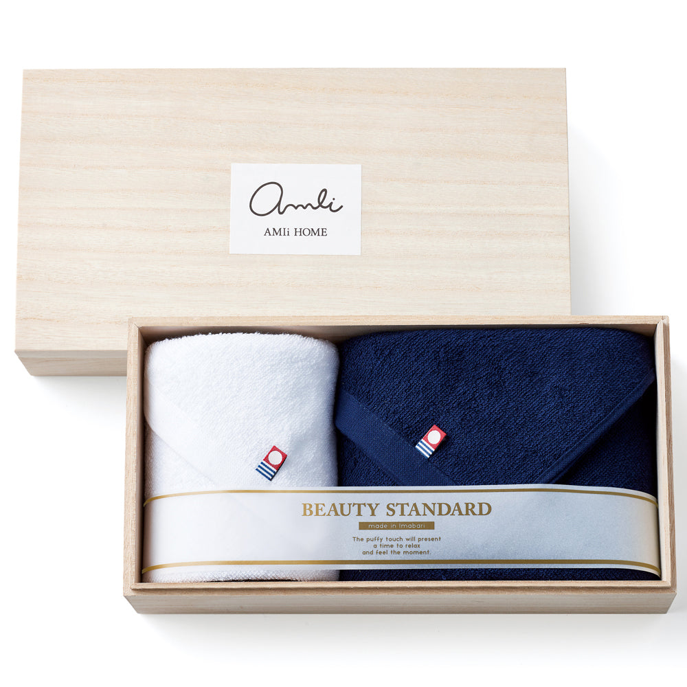 | 商品サイズ寸法 | ウォッシュタオル(約34×30cm)×1 フェイスタオル(約75×34cm)×1 日本製 箱サイズ/29.7×15.5×h8.7cm・木箱入り |