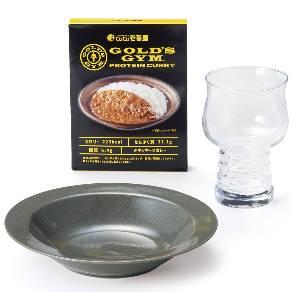| 商品サイズ寸法 | プレート(φ20.9×h4.1cml)×1 グラス(φ8.7×h13.7cm・容量480ml)×1 プロテインカレー(200g)×1 プレート・カレー:日本製/グラス:中国製 箱サイズ/32.3×22×h10cm・化粧箱入り |
