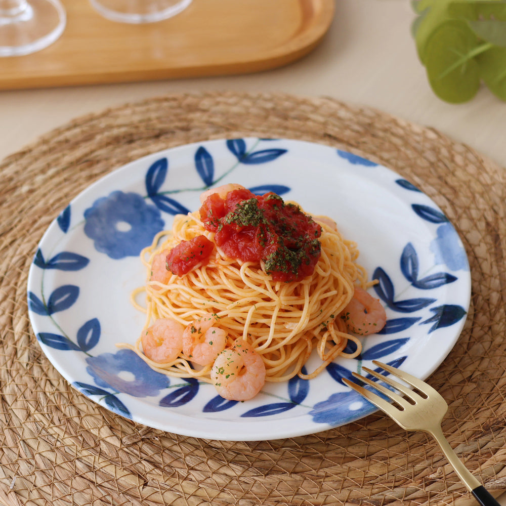 白地に藍色で描かれた模様が料理を引きたててくれます。