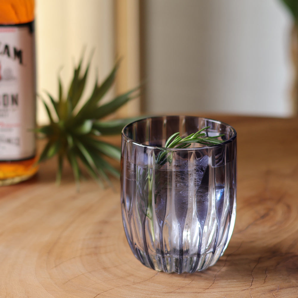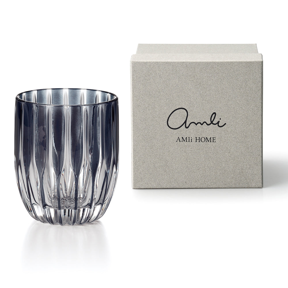 太陽から広がる光条のように、底から口元へ広がる美しいカッティングデザインが施されたグラス。