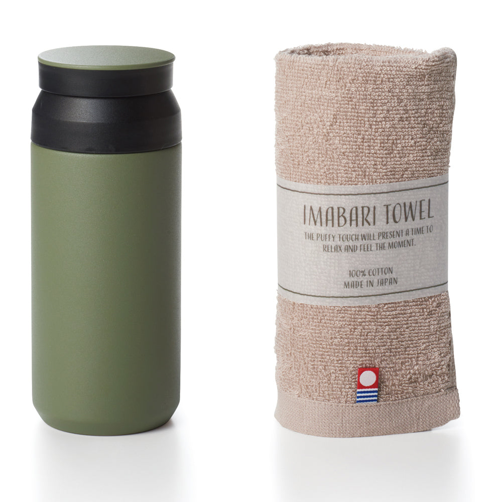 | 商品サイズ寸法 | 真空二重構造ボトル(φ6.5×h16.7cm・容量340ml)×1 ウォッシュタオル(約34×30cm)×1 ボトル:中国製/タオル:日本製 箱サイズ/14.1×18×h7.2cm・化粧箱入り |
