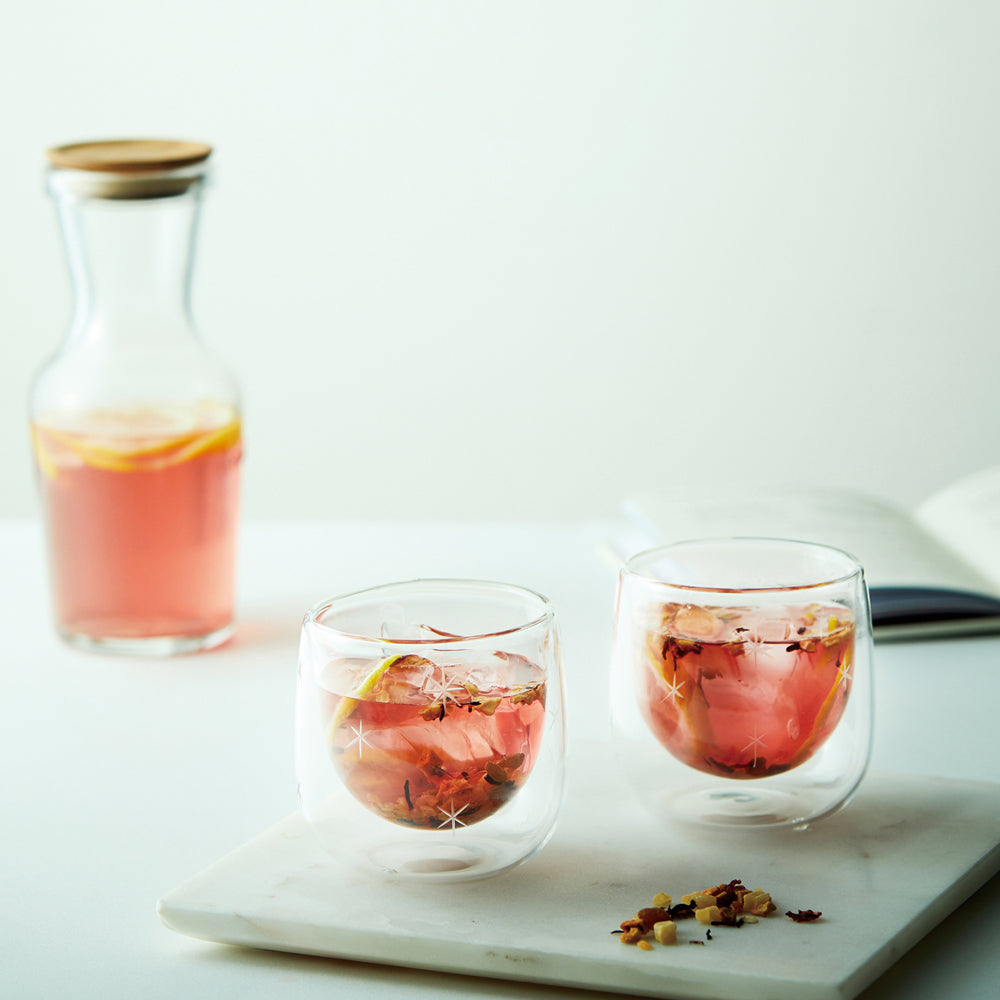 中身が浮いて見えるスタイリッシュな二重構造のカップは耐熱・保温・保冷性を併せ持つ優れもの。