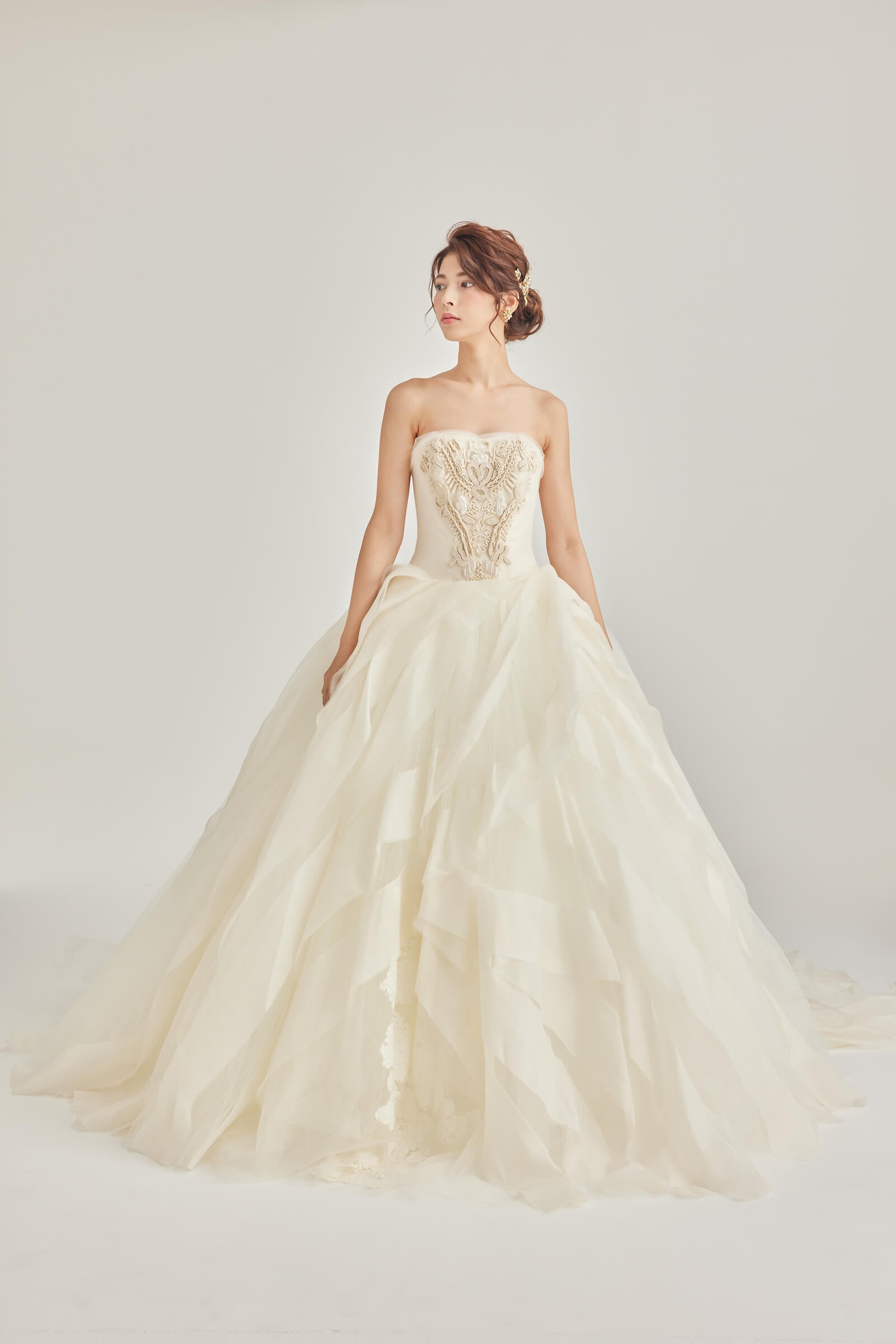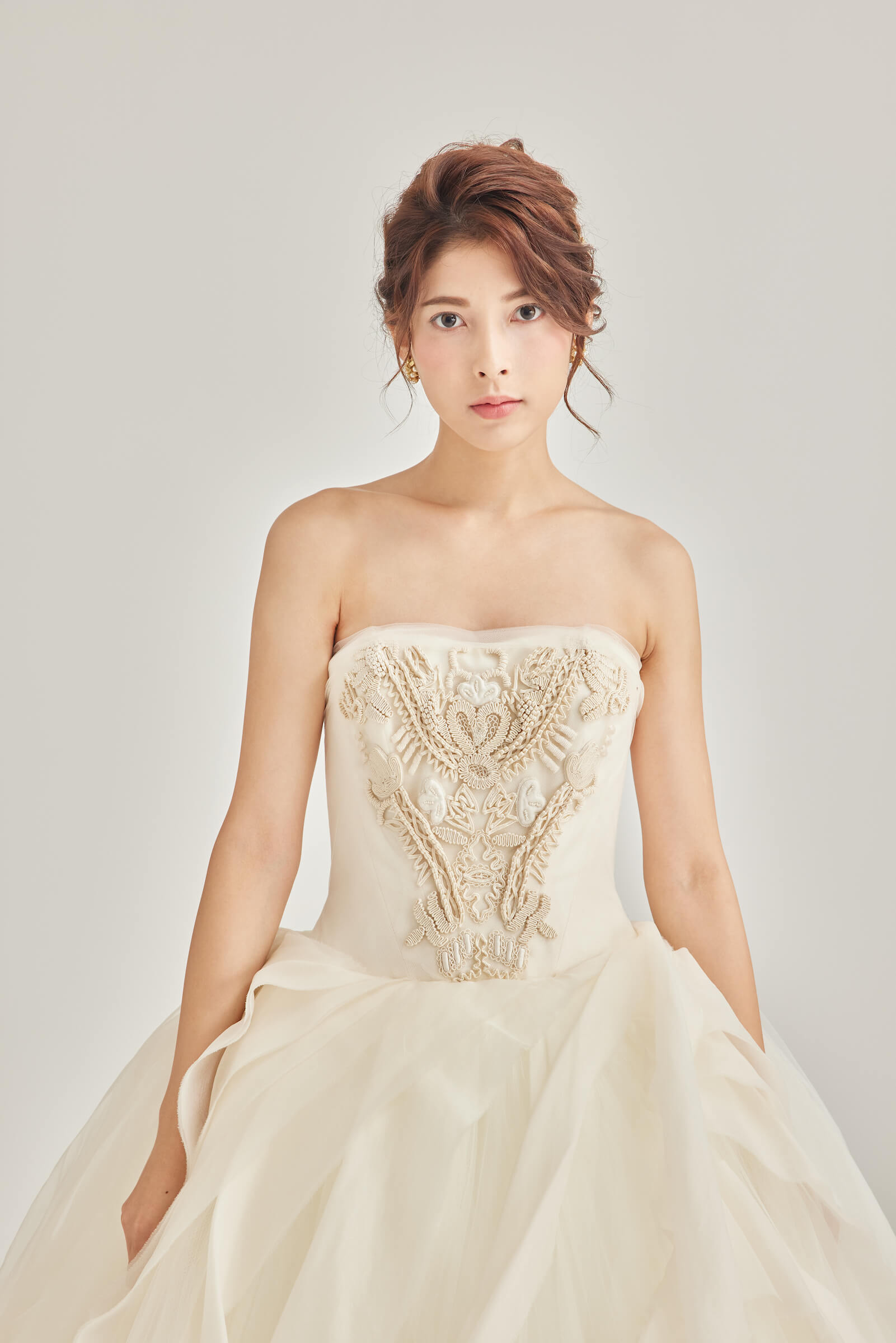 パールやビーズなどの装飾を施していないにも関わらず、その美しい立体的な刺繍の存在感が見る人の目を奪います。