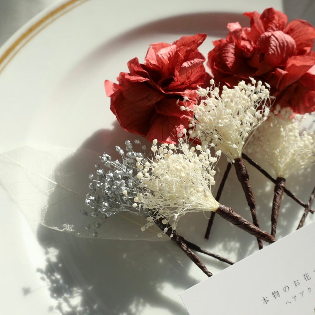 髪飾り K2【ヘアアクセサリー 花 ドライフラワー プリザーブド かすみ草】 【結婚式 和装 アクセサリー】
