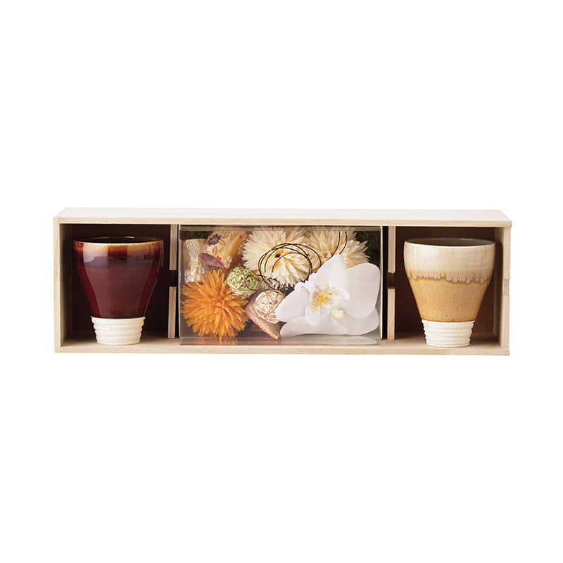| 商品サイズ寸法 | 箱サイズ/124×408×107mm カップサイズ/φ80×96mm(250ml)×2 アーティフィシャルフラワーBOX/105×185×93mm |