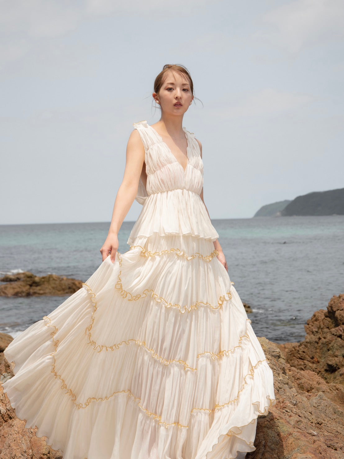 柔らかく可憐なシフォン素材とティアードシルエット。