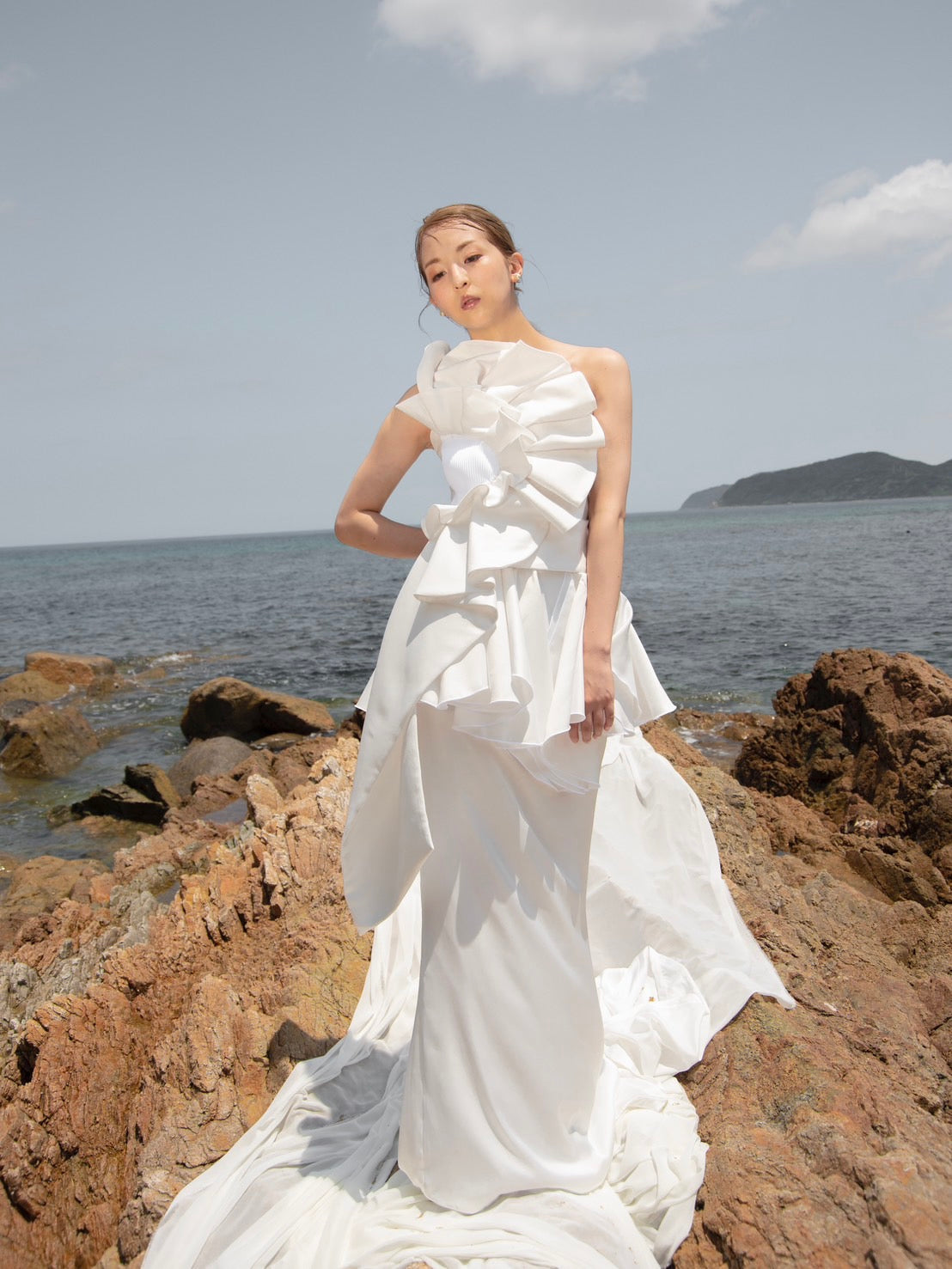 アシンメトリーフリルドレス【ウェディングドレス レンタル】
