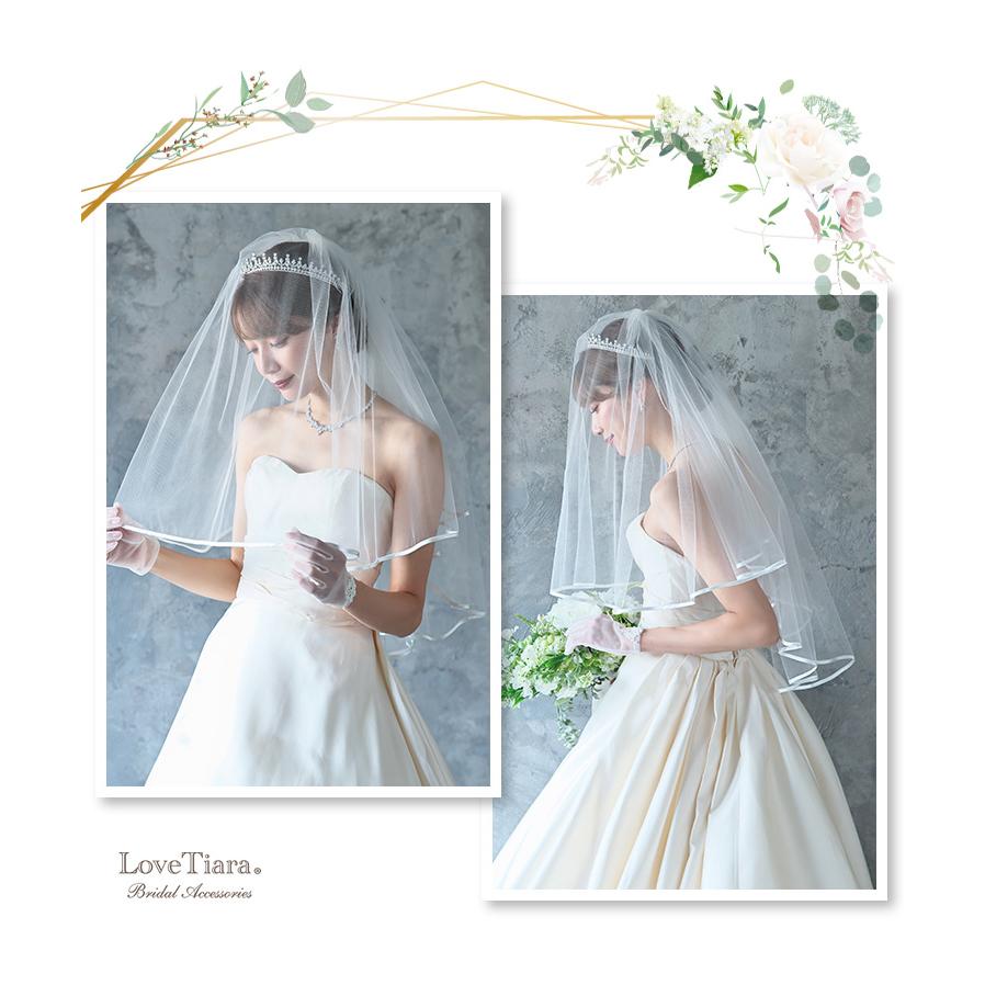 永遠の花嫁定番ウェディングベールサテンパイピングです。