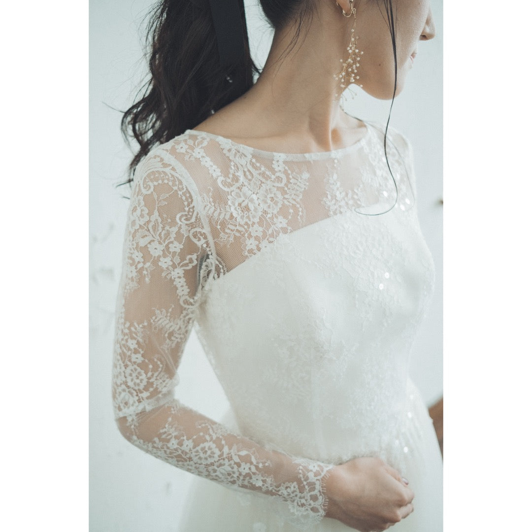 上半身のリバーレースには、クリアなスパンコールを刺繍し