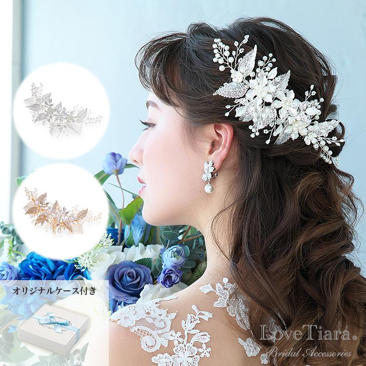 繊細デザインながら抜群の存在感フラワーモチーフと透かし模様のシルバーリーフが華やかに編まれ、パールがアクセントになった上品な小枝アクセサリー。
