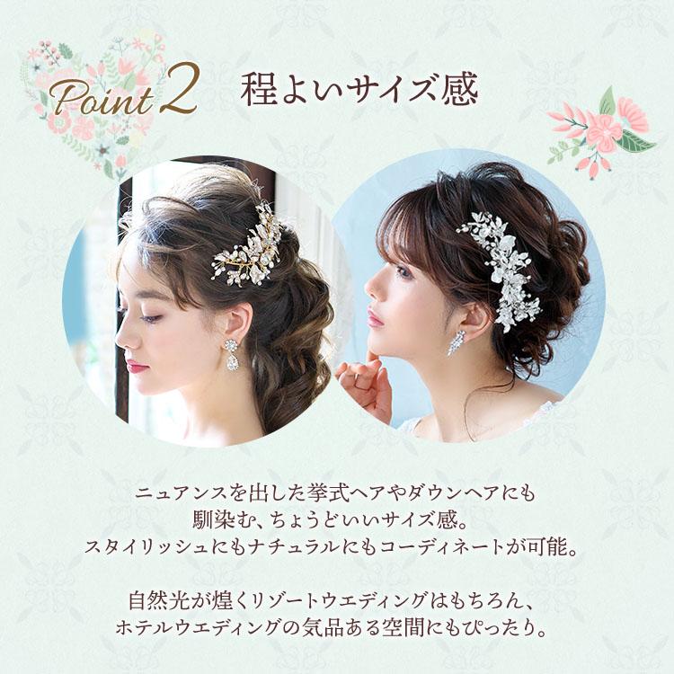 ニュアンスを出した挙式ヘアやダウンヘアにも馴染む、ちょうどいいサイズ感。スタイリッシュにもナチュラルにもコーディネートが可能。