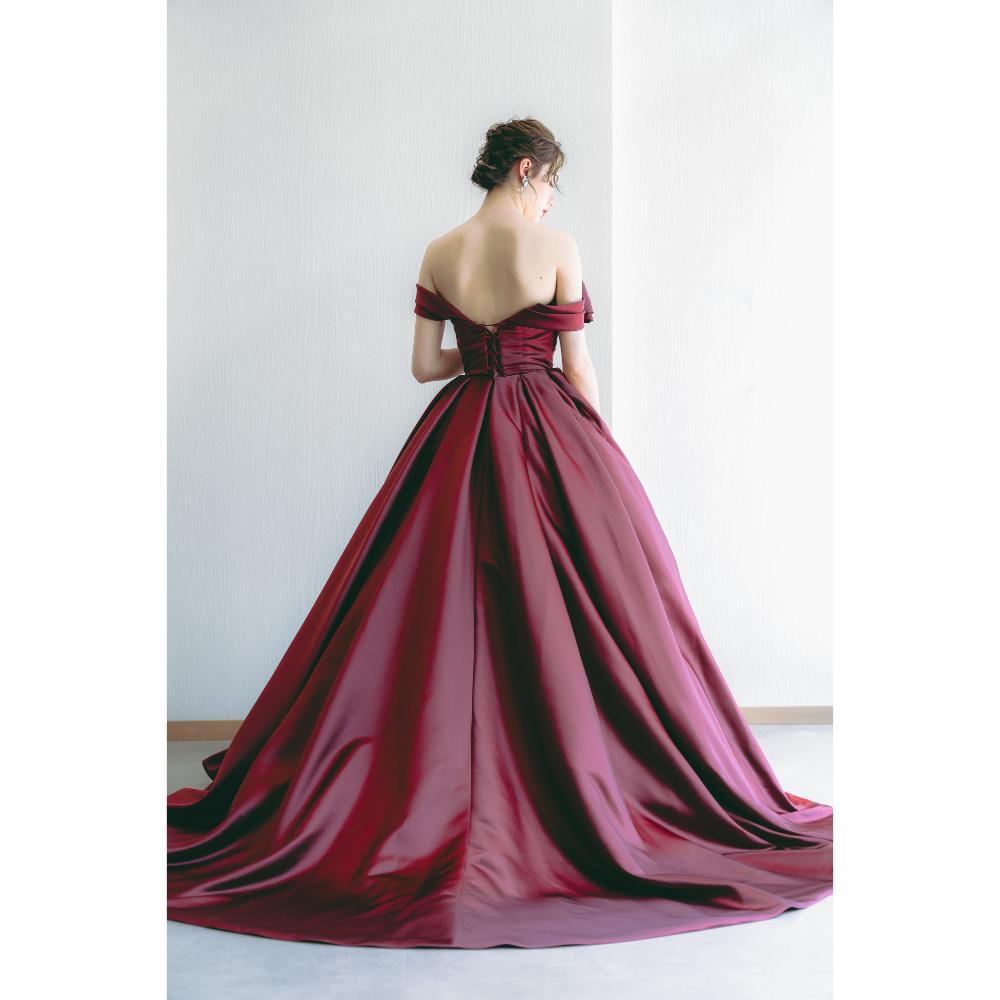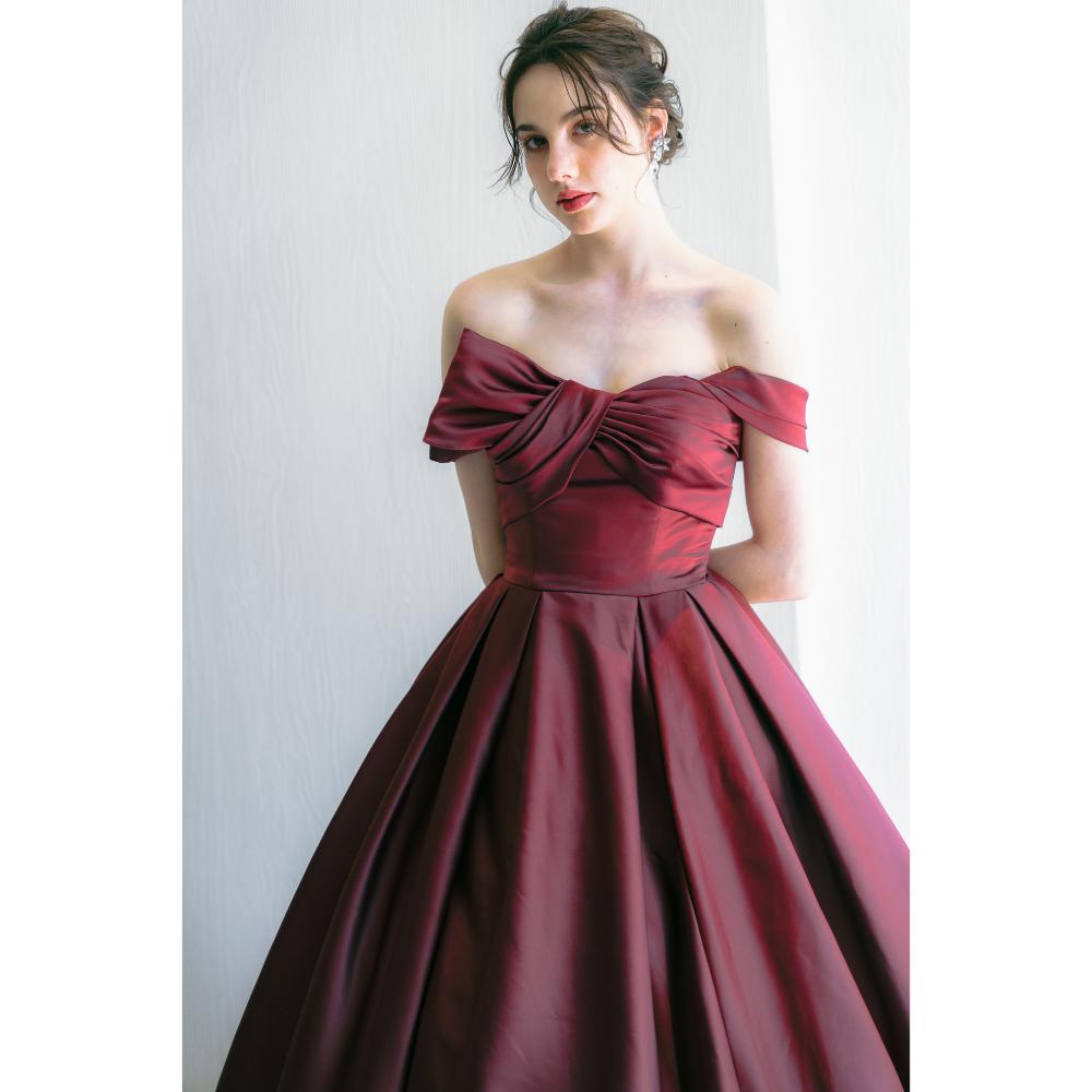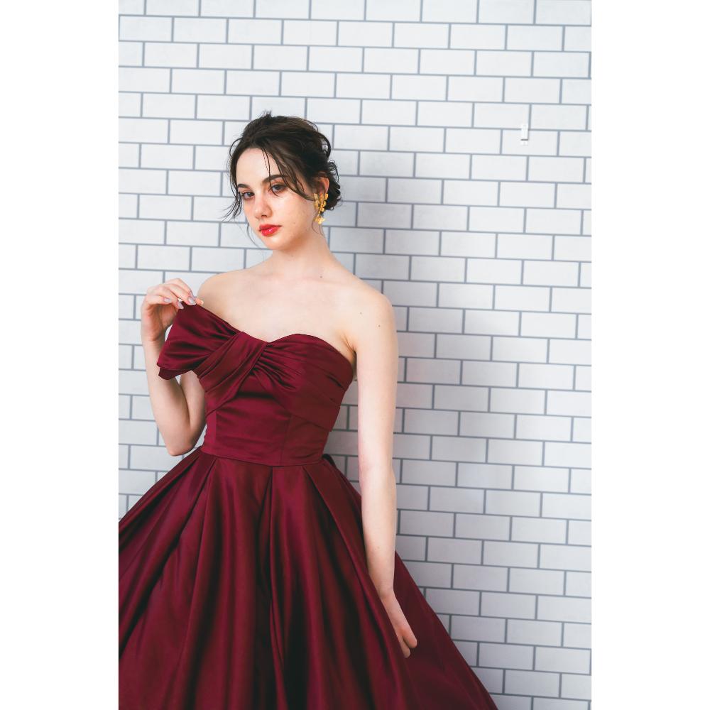 深みのあるワインレッドカラーがクラシカルな雰囲気を装う1着