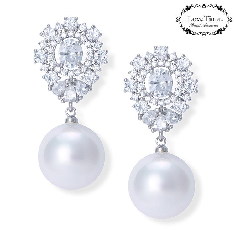 キュービックジルコニアと貝パールを使用したクラシカルなイヤリング(ピアス)です。
