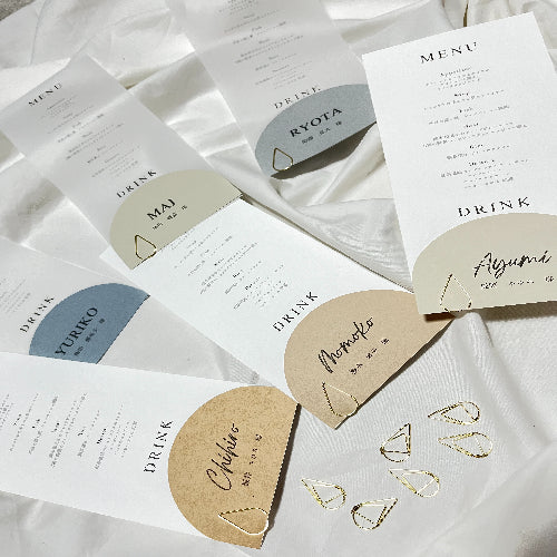 | 印刷備考 | ・席札はサークルカッターで一枚一枚アーチ型にカットしております。 多少のズレが生じる場合がございます。 |