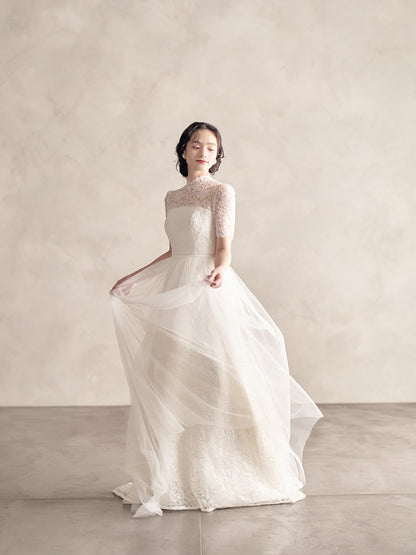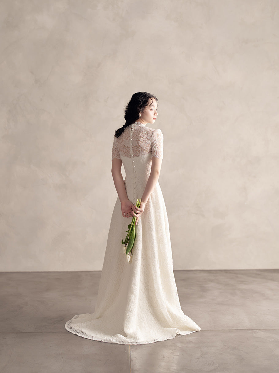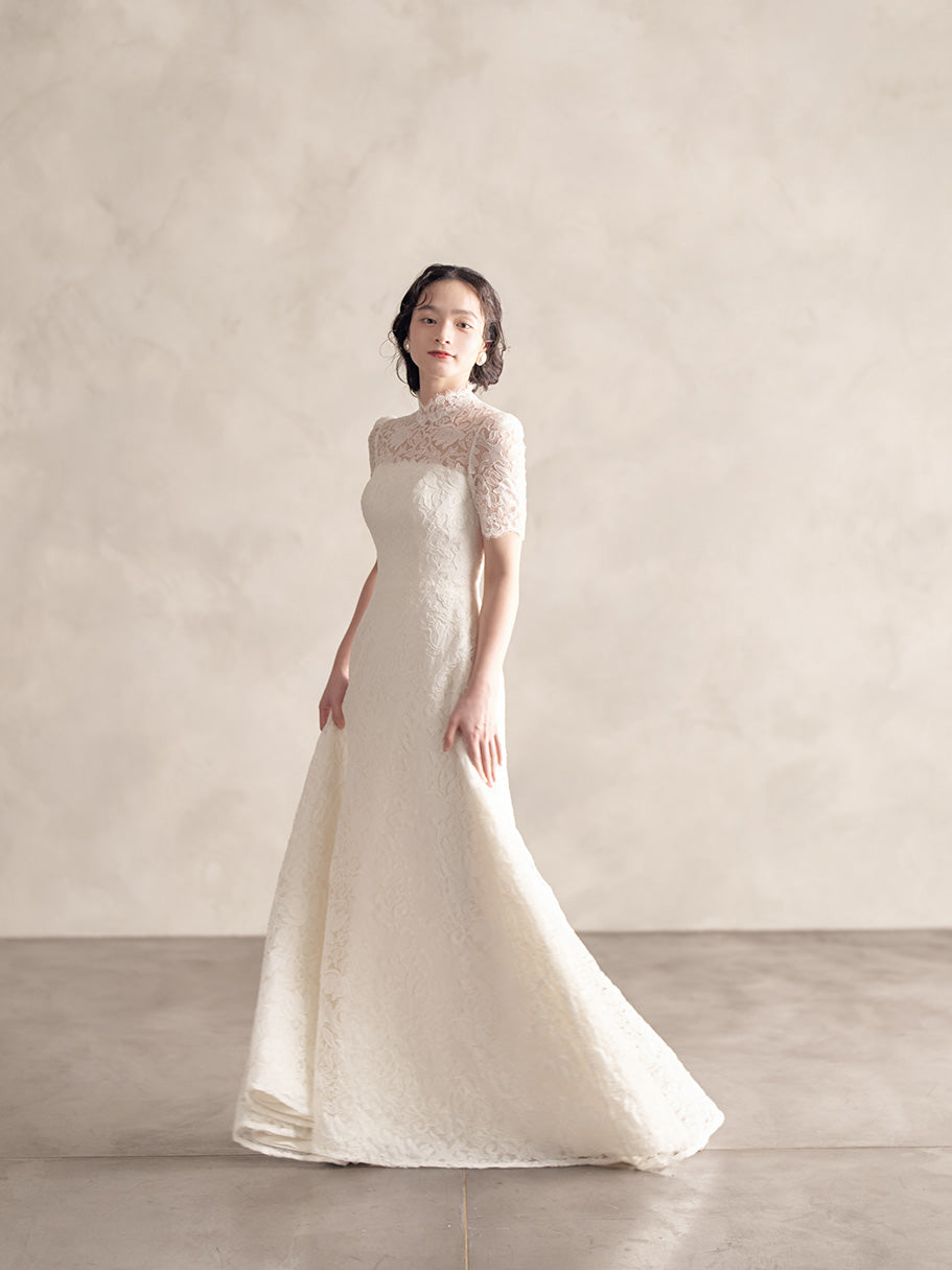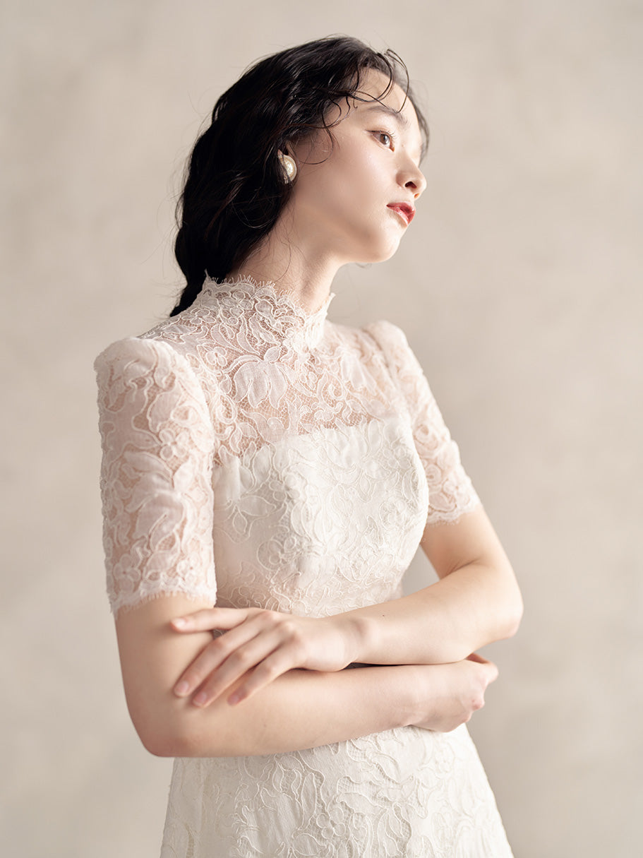 ハイネックや肩のデザインも相まって、クラシカルな印象を与えてくれます