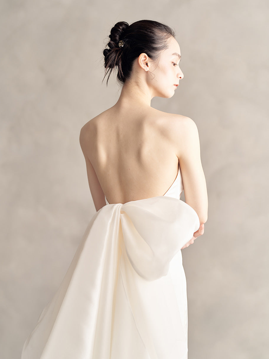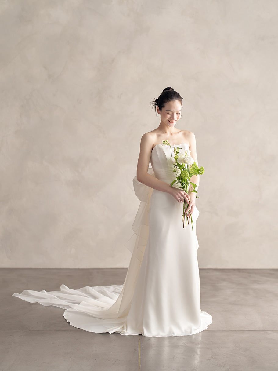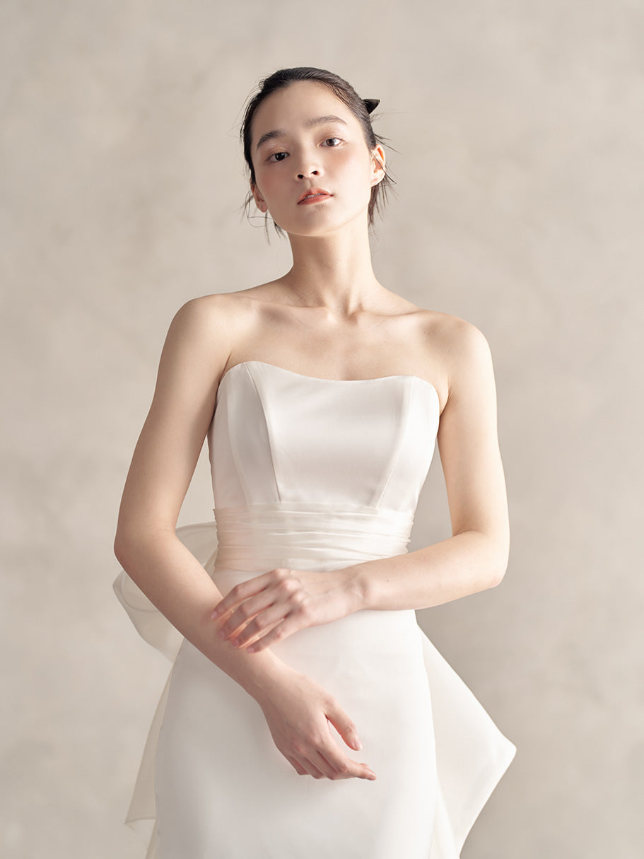 とろみのあるシンプルなビスチェのスレンダードレス。