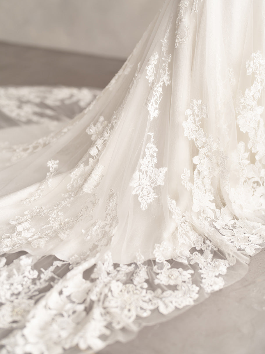 イタリアのレースに、大胆な煌めきを放つビジュー刺繍を重ねて。
