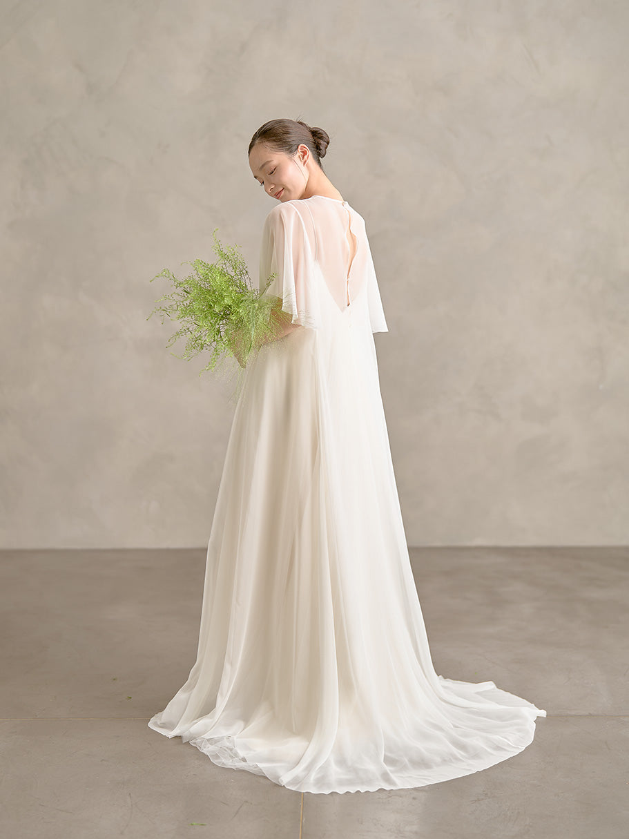 透明感あふれるシフォンのオーバードレスでふんわりと空気をまとい、