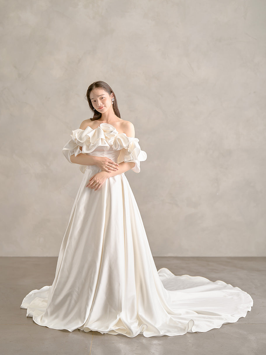 縦に重なるバックフリルがたおやかな美しさを放って。