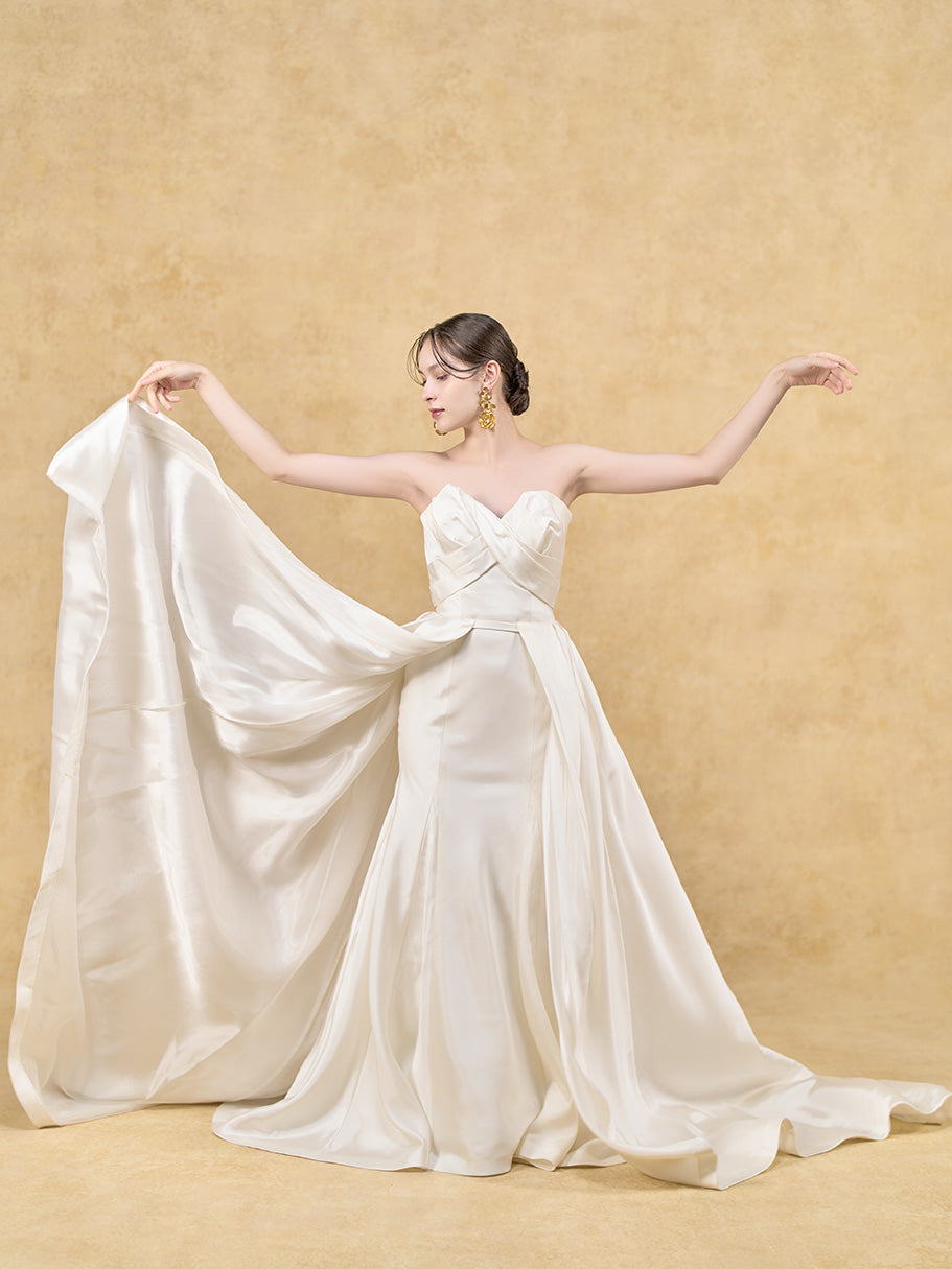 マーメイドラインとAライン、2つのスタイルを楽しめるドレス。